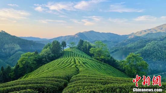 青色茶山映衬碧绿溪水 武夷山国家公园春光如画