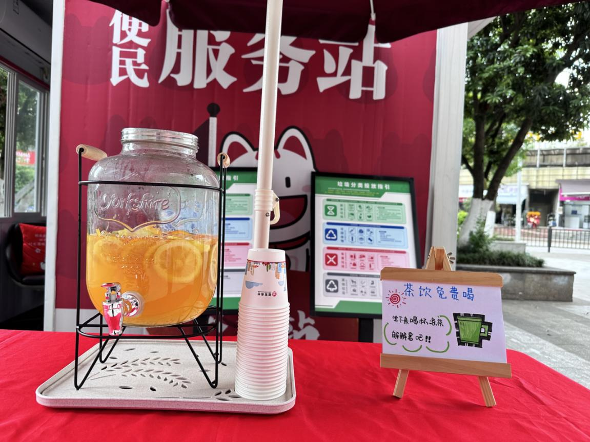 便民服务站极大便利了环卫工人、线路维修工、农民工等群体,免费的休息站、茶水、爱心座椅、防暑药等便民服务,让他们感受到招商银行的温暖。