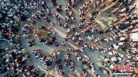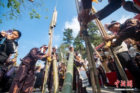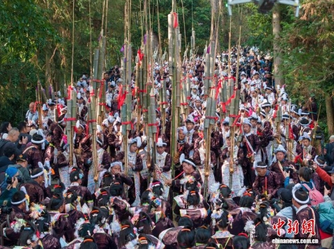 12月8日,贵州省黔东南苗族侗族自治州从江县丙妹镇岜沙苗寨迎来一年一度的传统芦笙节,当地苗族同胞欢聚一堂载歌载舞,庆祝丰收,祈福来年风调雨顺。