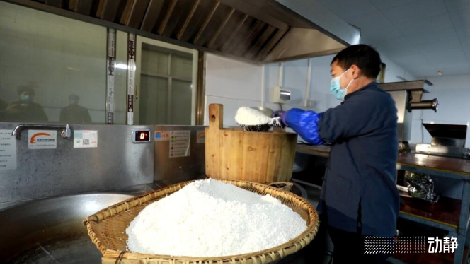 经过一夜的浸泡,水中的糯米会充分吸水,便可沥水上甑。为使糯米香味更为浓厚纯正,蒸糯米的器具一般为杉木打造的木甑,沥干水分的糯米上甑蒸40分钟,当甑中米粒色泽发亮,阵阵糯香四溢开来时就可出锅。