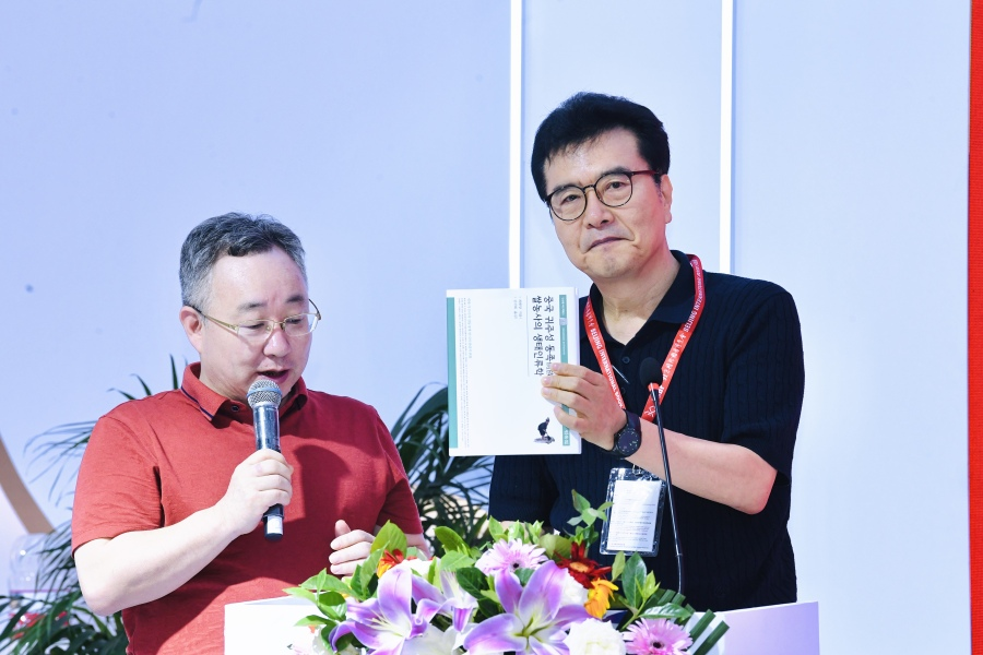 《中国侗族稻作文化研究》作者崔海洋和韩国民俗苑出版社总编辑赵承衍一起推介该书