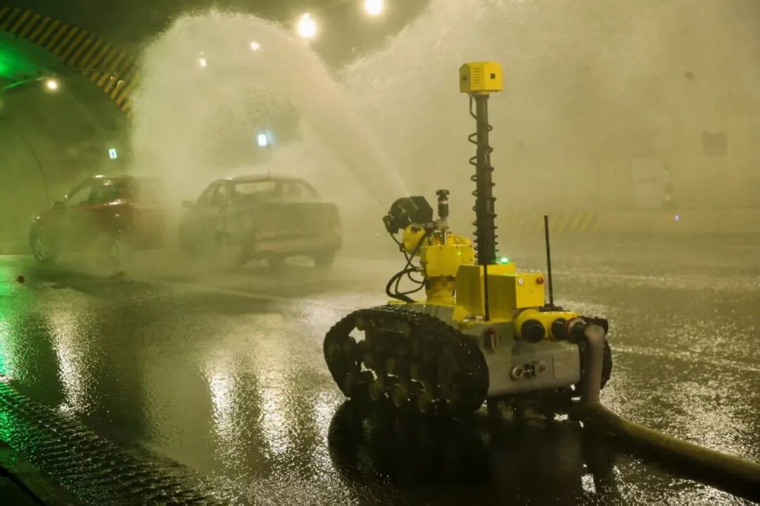 作为演练核心的“隧道火灾救援”实战环节,大娄山隧道群志愿消防队与属地消防队紧密联动,深度融合信息报告、应急启动、交通管制、抢险救援、舆情管理等多项任务。与以往相比,本次演练增加了灭火机器人、隧道消防车等高精尖装备人装结合,对着火区进行泡沫覆盖、攻坚作战、消灭火势。火情扑灭后,在专业技术人员的指导下,对隧道内受损的照明、通风、监控设备进行检修;确认无安全隐患后,解除交通管制,恢复隧道通行,应急响应按程序终止。全面检验各参与单位在应急指挥、技术应用和协同处置等方面的能力。
