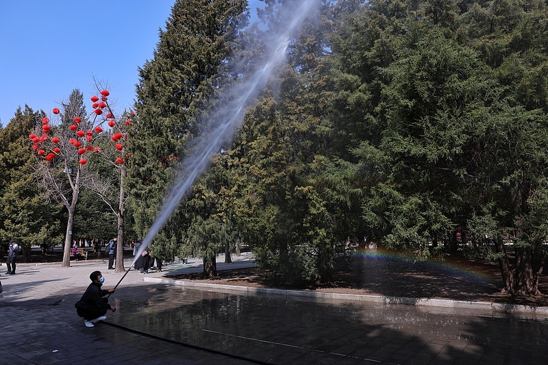 从个人到社会,各方都在积极应对。北京市已在2025年秋冬季提前修剪圆柏等致敏植物的雄球花枝条,并在近期使用花粉固定剂对树冠喷淋,加速花粉沉降;成都等南方城市也已启动花粉飞絮综合治理工作,在开展树木规范修剪的基础上,采用高压喷淋等方式,减少花粉飞絮的空中飘散量。