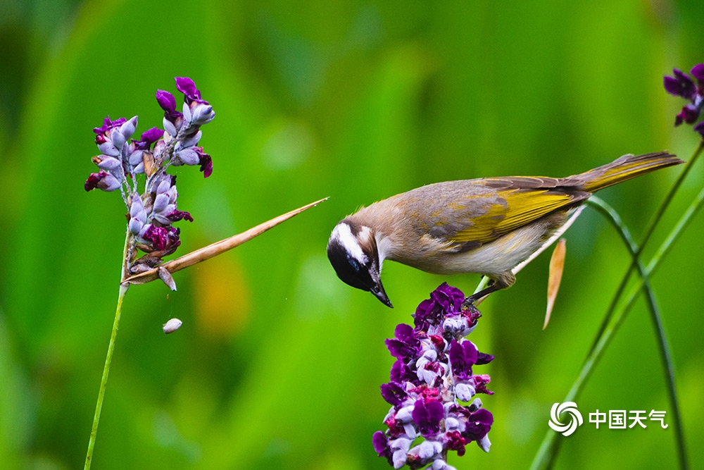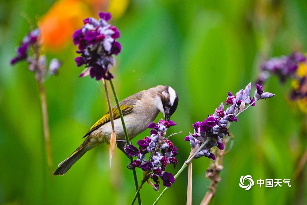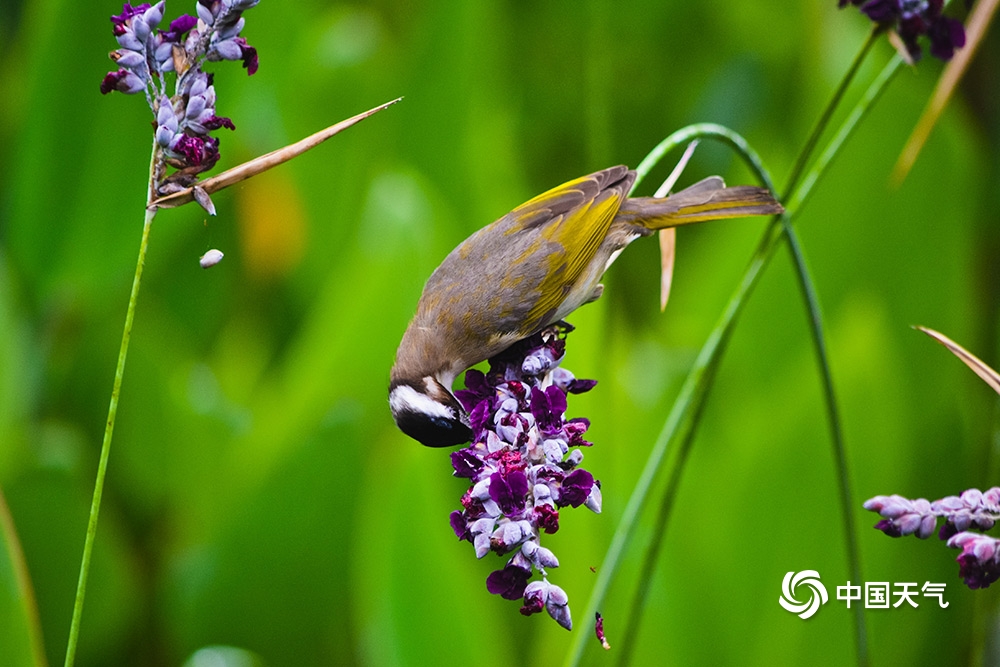 重庆:小鸟流连花丛 享受“花朵大餐”