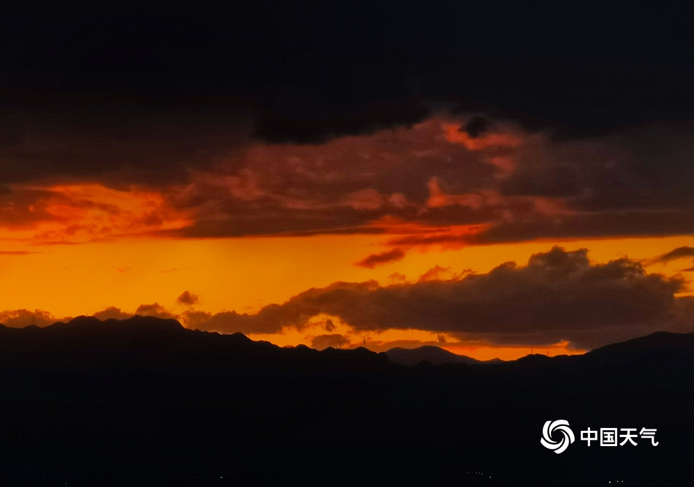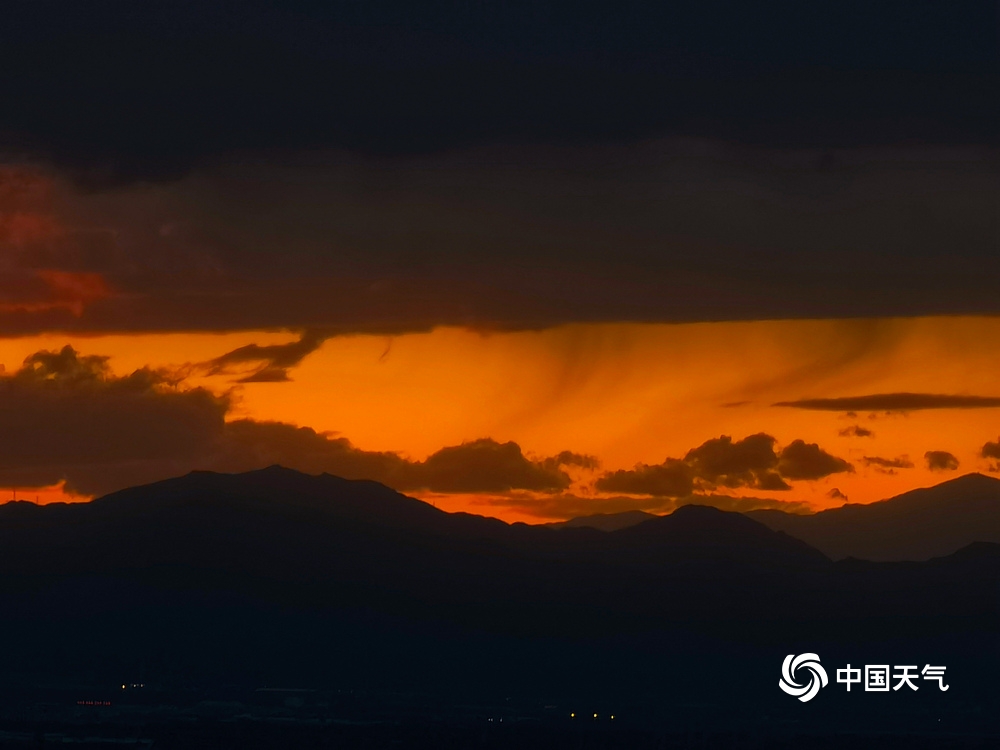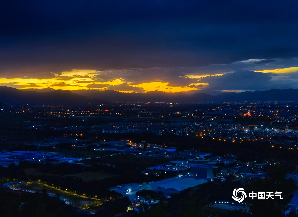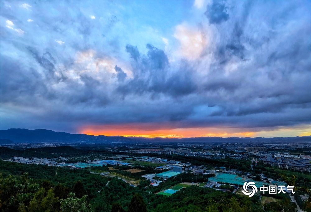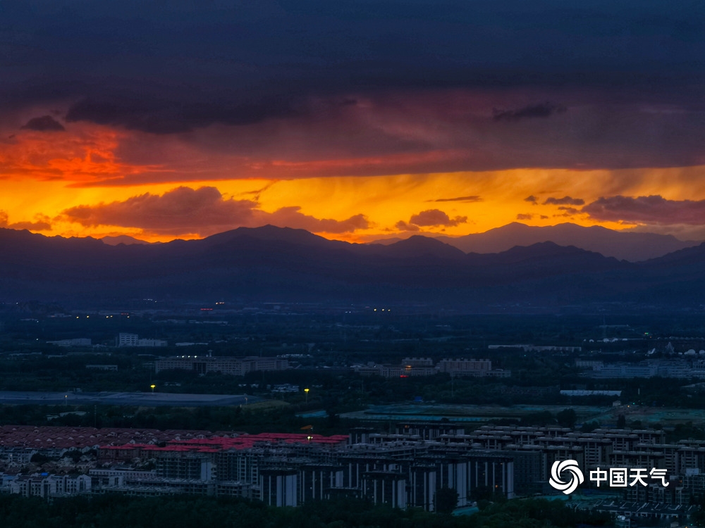 中国天气网讯 大片来了!6月5日北京夕阳美如画,在云层的衬托下,变化多端,金色的、橙色的、红色的……像是大自然打翻的调色盘一样。(图/杨惠中)