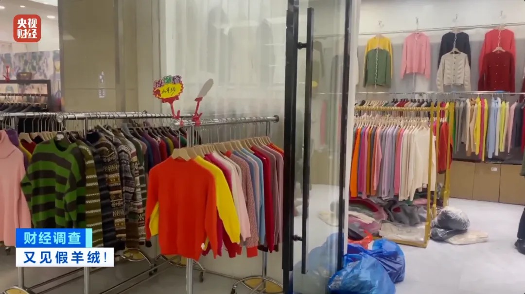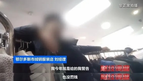 在绒钥服装店,负责人刘经理表示,她售卖的这些羊绒衫虽然标称100%山羊绒,但其实大都是羊绒、羊毛混纺。刘经理因虚标羊绒含量、成分,刚被处罚过,但她完全不在乎继续售假。