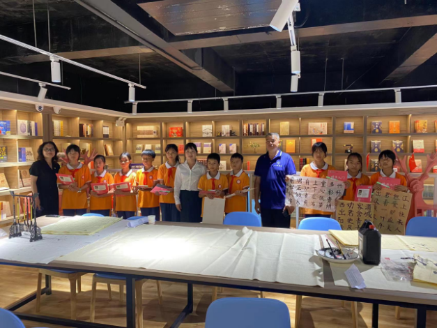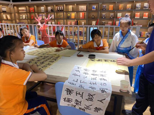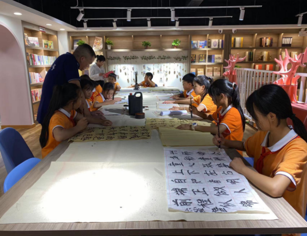 本次活动邀请到镇宁七端书画院李朝杰老师到店,给小朋友们讲解书法起源及演变过程,他强调了书写八分字、占格中央、以点为出发点的基础书写技巧,并结合实操演示,帮助大家更透彻地理解用笔和落笔技巧。小朋友们在老师的悉心指导下亲自上手练习,一幅幅字画、一张张作品,表达了小朋友们对祖国、人民、生活的热爱,诠释了自立自强、朝气蓬勃、奋发向上的精神,展现了激情豪迈、挥毫泼墨、舞动丹青的青春活力。