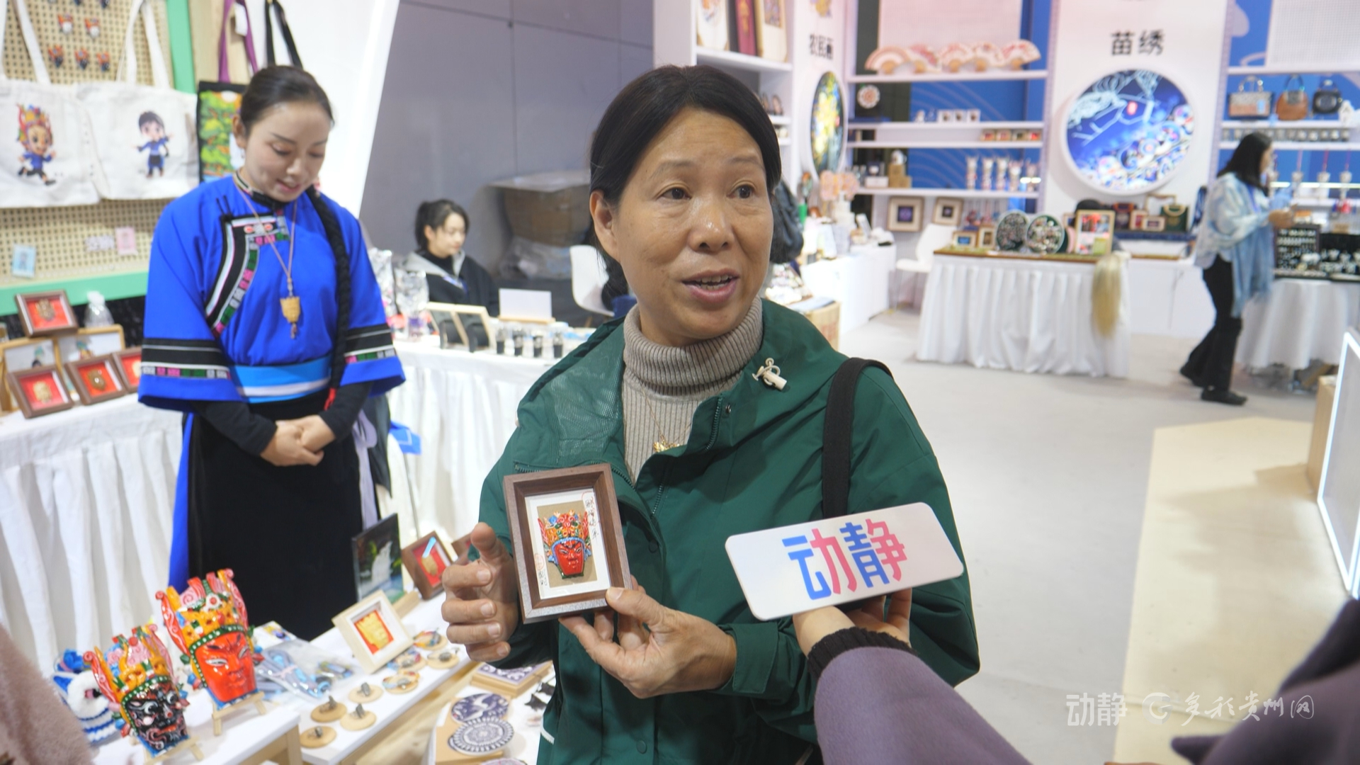 “在保留传统的基础上有创新,屯堡这个面具就是很古老的制作工艺,可以做成小摆件,寓意吉祥,是现代与传统的结合。”广西游客周女士手持非遗文创,细细感受工艺细节。