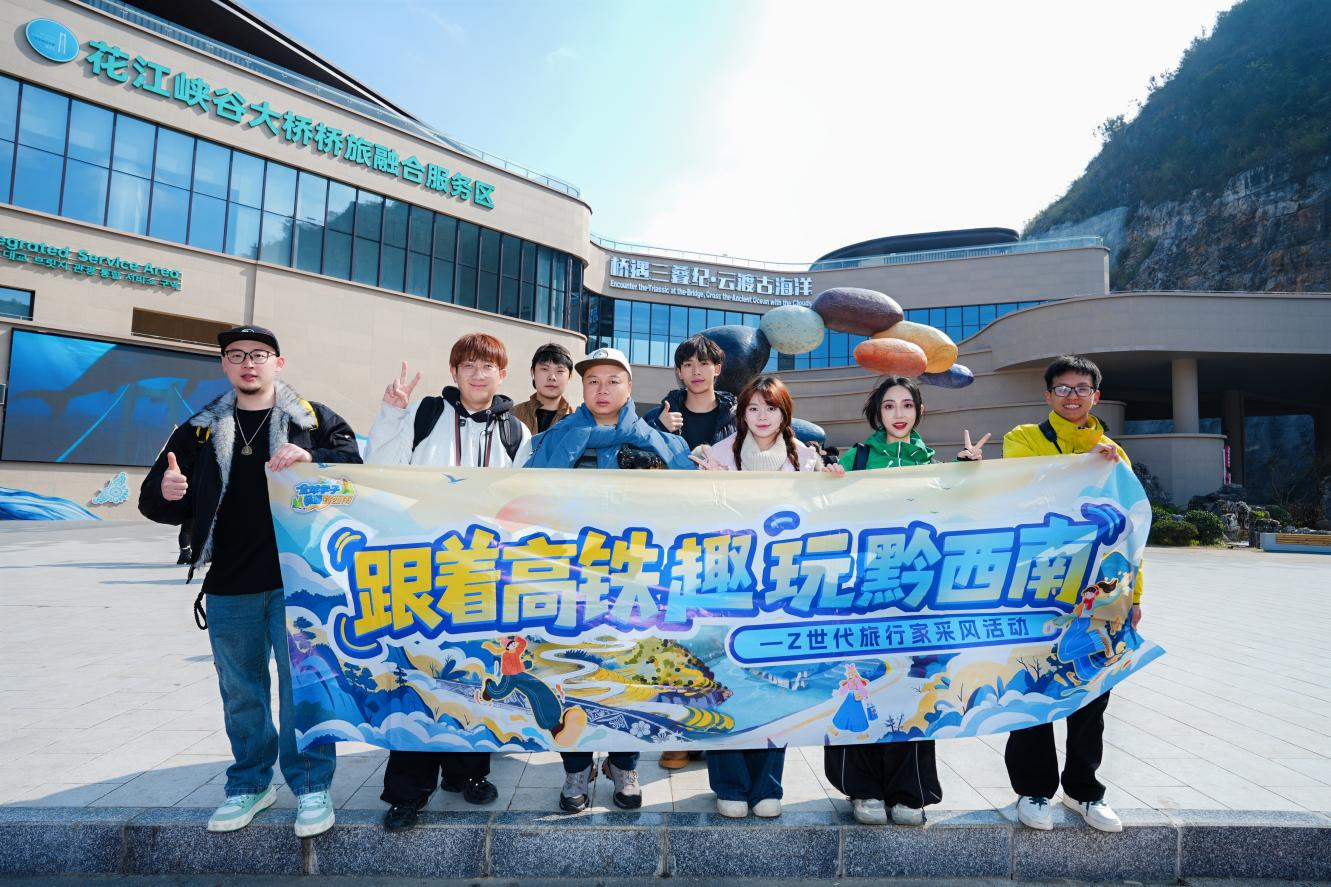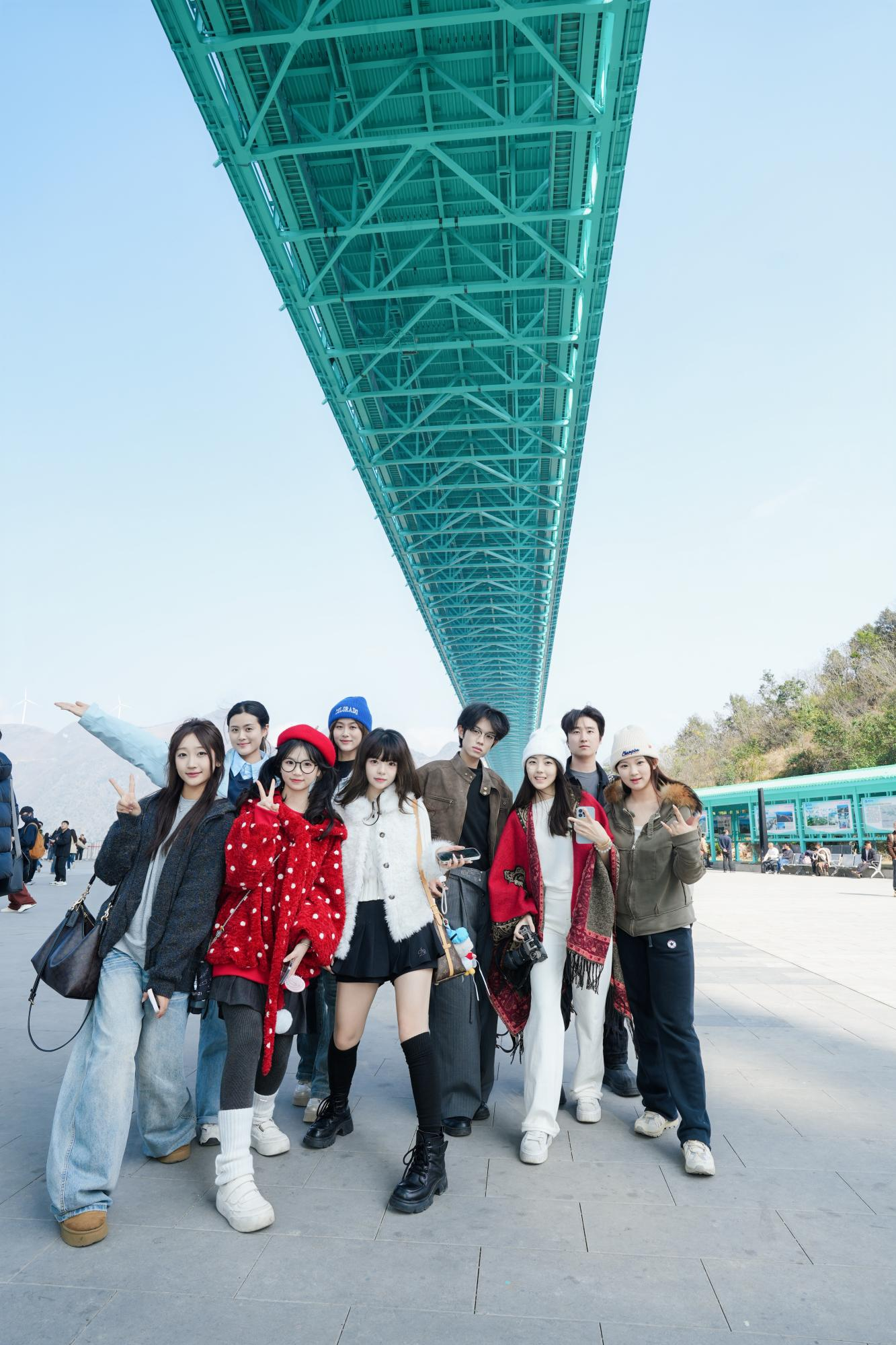 午后,旅程迎来又一个高潮。学子们乘车前往并徒步登临花江峡谷大桥观景台。当这座桥面距江面垂直高度达625米、主跨1420米的“世界第一高桥”全景映入眼帘时,现场响起一片惊叹。巍峨的桥塔直插云霄,红色的桥身在墨绿峡谷映衬下宛如一道飞虹。学子们在此直观感受到了超级工程所代表的中国智慧与力量,它不仅是连接天堑的交通枢纽,更是人类勇气与技术的丰碑,与清晨所见的自然奇峰形成了跨越时空的壮美呼应。