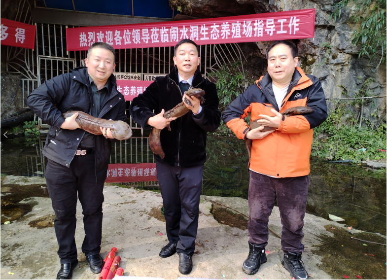 “这个闹水洞水质养的娃娃鱼肉质口感都不错,每年我都要来买上100斤,前几天我还特地来买了2条大的送回重庆璧山我的老家,让我的亲人也享受到这样的水产美味。”重庆籍顾客丁显云怀抱着一条肥硕的娃娃鱼乐呵呵地说。
