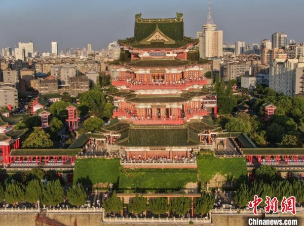 5月1日,江西南昌,“江南名楼”滕王阁迎来众多游客。(无人机照片) 中新社记者 刘力鑫 摄 多地旅游收入同比大增