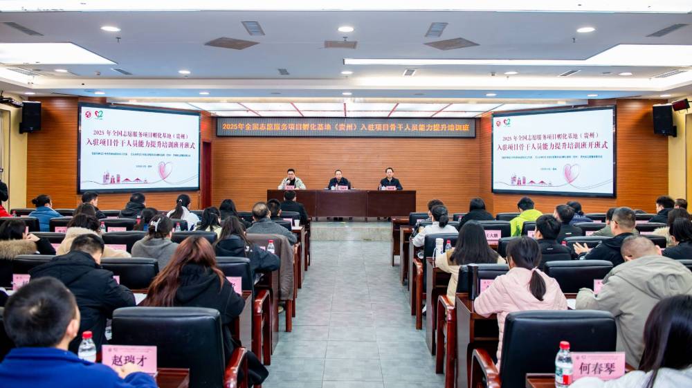 12月29日,全国志愿服务项目孵化基地(贵州)、贵州省志愿服务联合会举办的2025年入驻项目骨干人员能力提升培训班在贵州师范大学开班。贵州省委社会工作部副部长邓湘贵出席并讲话,贵州师范大学党委副书记陈应勇出席。