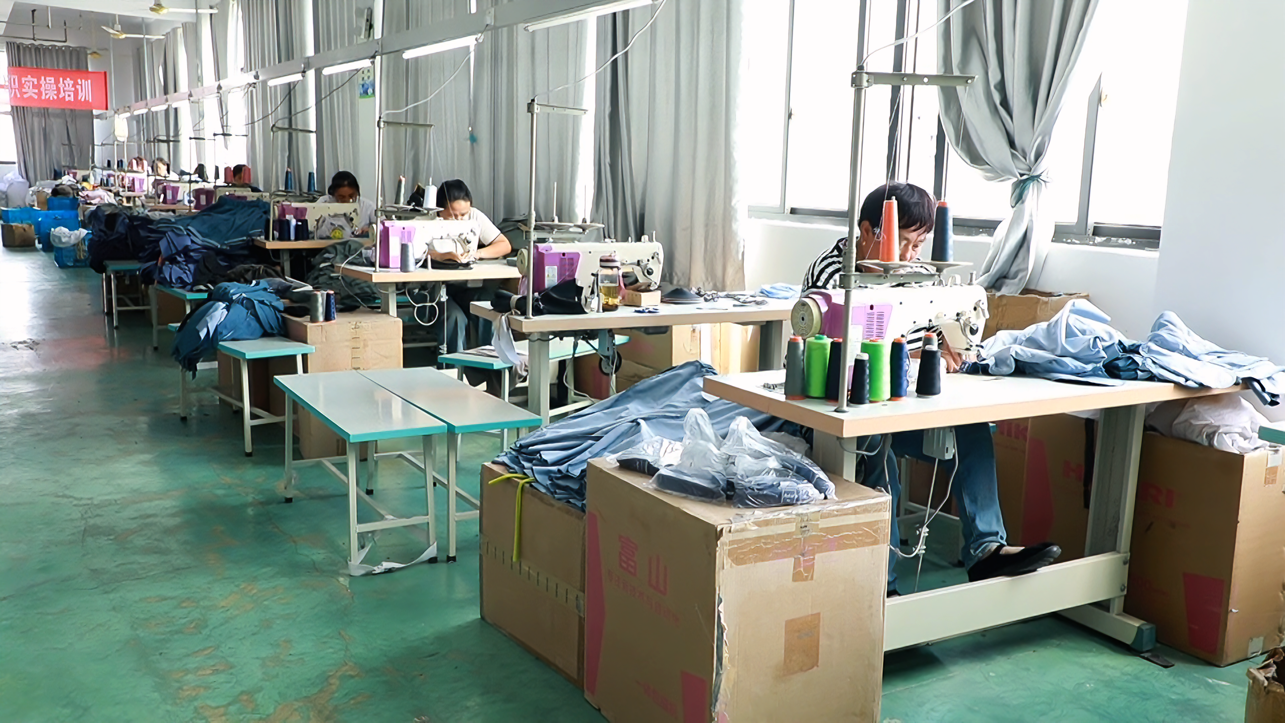 贵州金莱服饰有限公司是慈溪欧迈服饰有限公司在安龙投资设立的出口服装生产基地,主要生产拉链衫、套头衫等,日产量稳定在近2000件。
