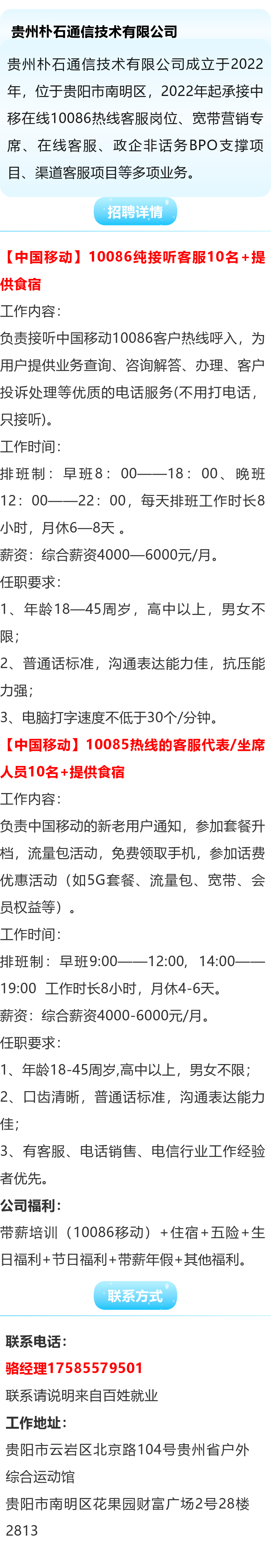 贵阳市云岩区、南明区招聘!综合薪资4000—6000元!带薪培训!