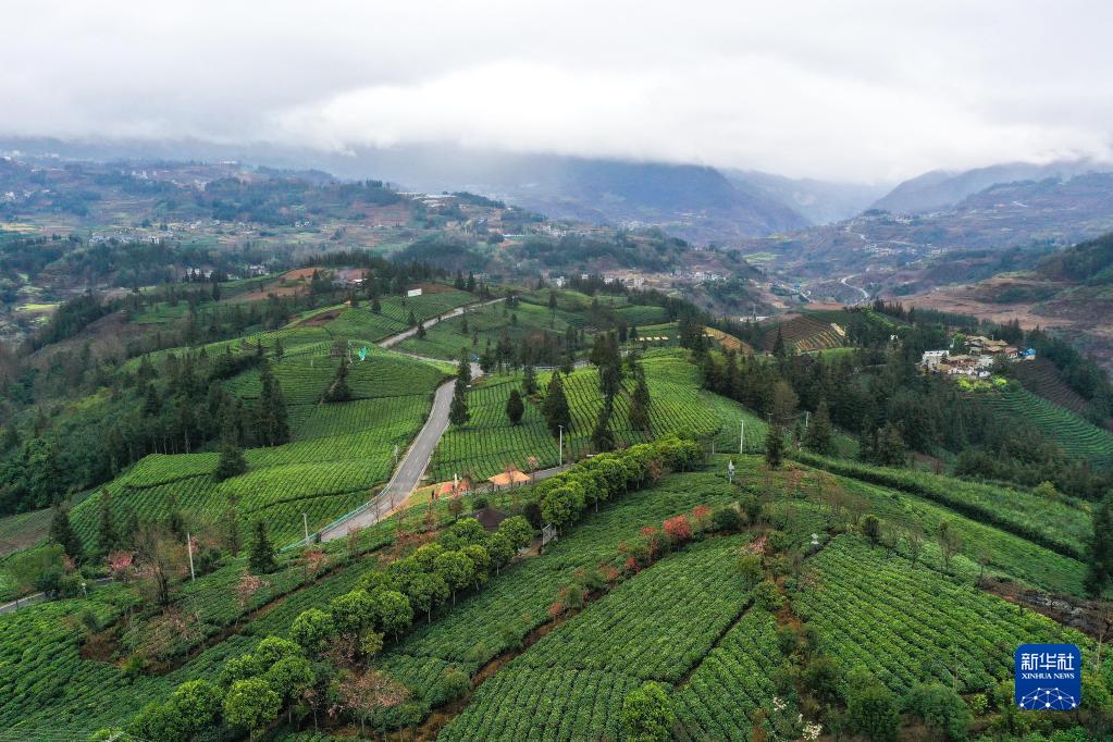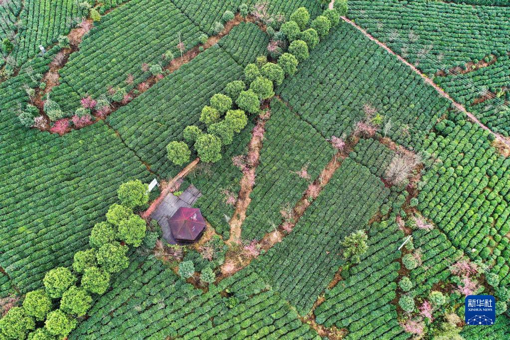 这是2月22日拍摄的贵州省普安县茶源街道生态茶园(无人机照片)。新华社记者 杨文斌 摄