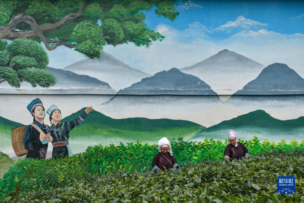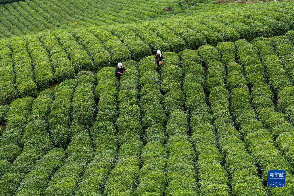 2月23日,贵州省普安县茶源街道联盟村的茶农在采摘春茶。新华社记者 杨文斌 摄