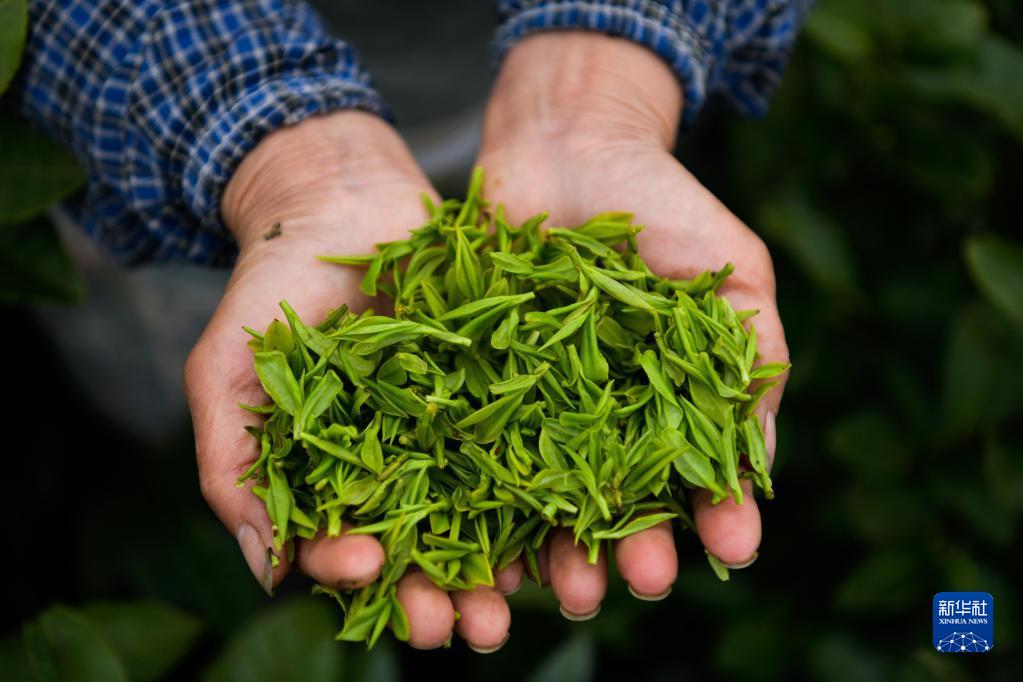 2月23日,贵州省普安县茶源街道联盟村的茶农在展示新茶。新华社记者 杨文斌 摄