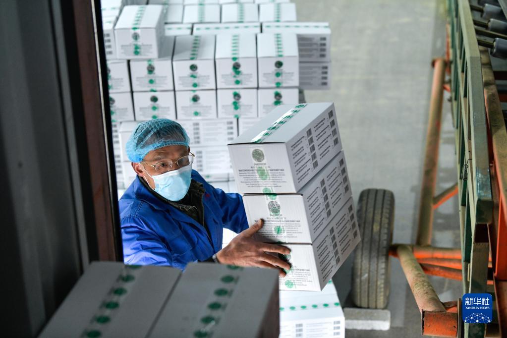 2月22日,贵州省普安县茶源街道一家茶企工人将出口俄罗斯的茶叶装车。新华社记者 杨文斌 摄