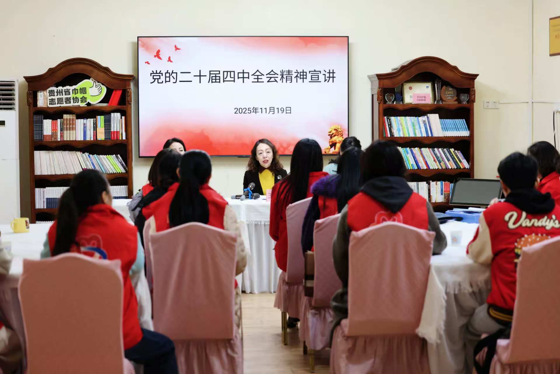 在党的二十届四中全会精神宣讲座谈环节,王丹同志系统阐释了全会的核心要义、精神实质与实践要求,并结合妇联工作实际与巾帼志愿服务特点进行了深入解读。她强调,巾帼志愿者协会作为党和政府联系服务妇女儿童的重要桥梁纽带,必须将学习贯彻全会精神与推动志愿服务高质量发展紧密结合起来,聚焦妇女儿童急难愁盼问题,不断创新服务模式、拓展服务领域,确保全会精神在基层落地生根、开花结果。同时,王丹同志对协会未来工作提出了明确要求,鼓励协会持续强化党建引领,深化支部联建成果,广泛凝聚巾帼力量投身社会公益事业,为贵州经济社会高质量发展贡献巾帼智慧和担当。