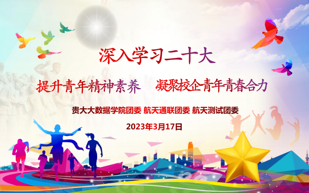 近日,航天通联团委与航天测试团委联合贵州大学大数据与信息工程学院团委,以“深入学习二十大 提升青年精神素养 凝聚校企青年青春合力”为主题开展校企青年联学联建活动,组织部分团干部、青马班学员代表到贵州大学科技园、工程训练中心,与大学青年一起聆听讲座、开展主题交流,实地参观学习,进一步增进校企共青团组织与青年之间友谊,深化青年思想引领,提升青年精神素养,激发青年青春活力,凝聚青年奋进力量。