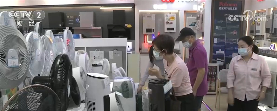 在广州的一家电器卖场,制冷类家电销售持续走俏,空调、电扇都被摆在了显眼位置,不少市民正在选购。