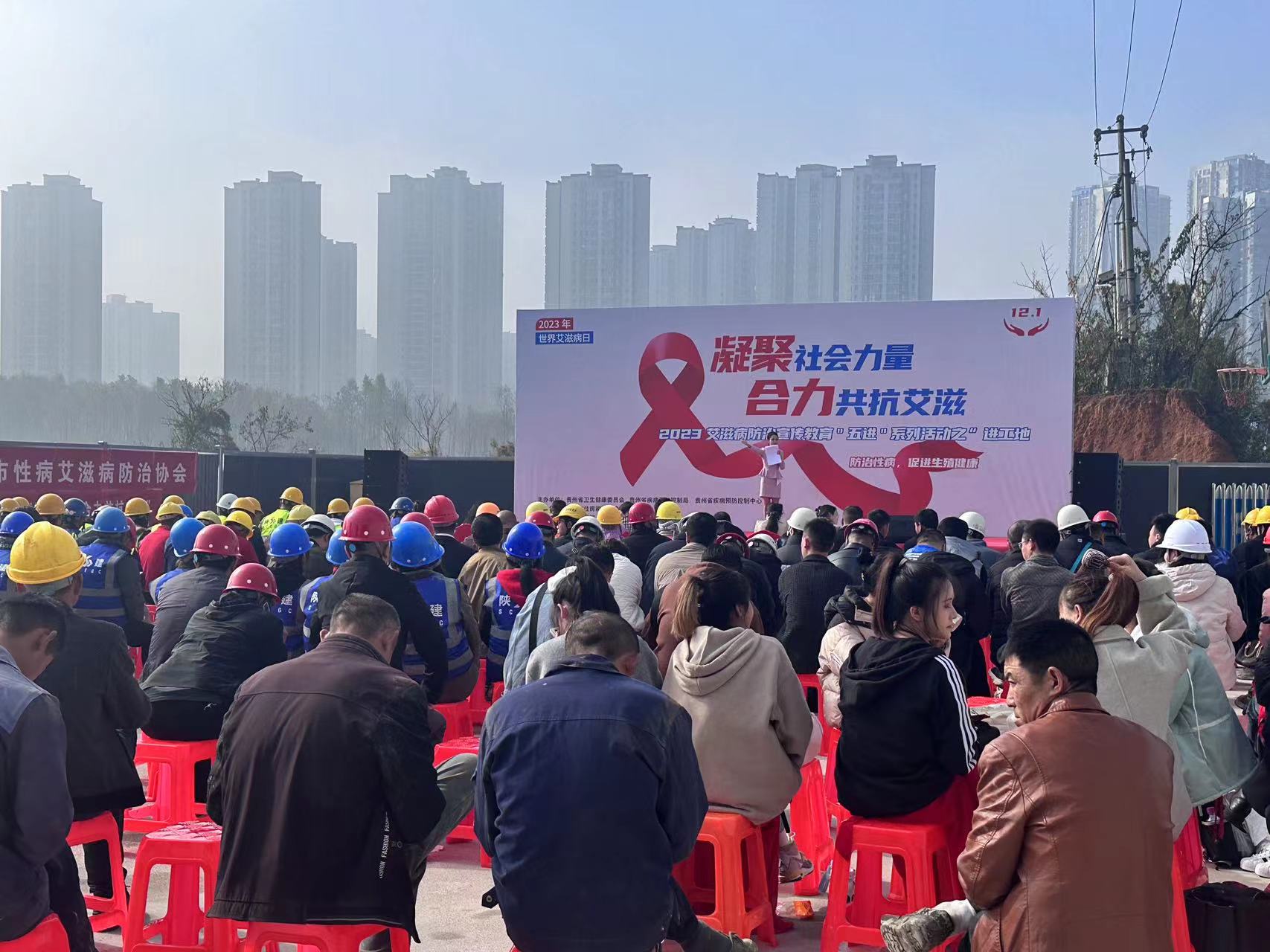 为贯彻落实党的二十大精神,推动艾滋病防治工作高质量开展,11月27日上午,由贵州省卫健委、贵州省疾控局、贵州省疾病预防控制中心主办,贵阳市住建局协办,贵州健康报、黔健传媒承办的“2023世界艾滋病日”——艾滋病防治宣传教育“五进”系列活动之“进工地”宣传教育专题活动,在贵阳市观山湖区的贵阳远大购物广场工地举行。
