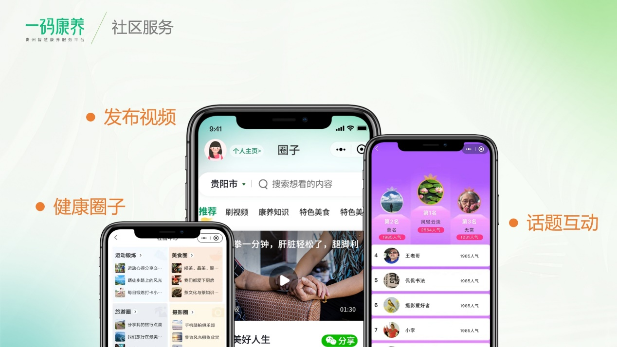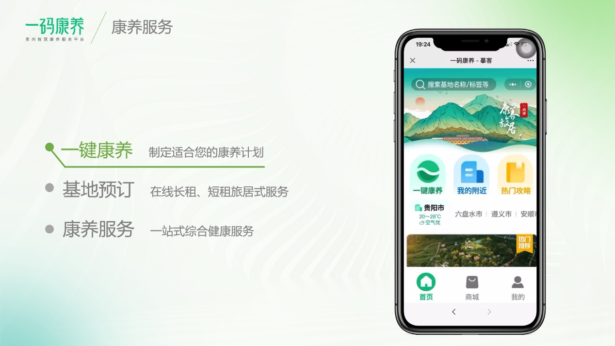 面对庞大的中老年群体康养需求,贵州立足于生态优势,不断探索培育养老服务新业态。在贵州省互联网协会、贵州太阳谷大健康产业发展有限公司、贵州云景文旅科技有限公司共同努力下,贵州智慧康养旅居服务平台“一码康养”已完成首期开发,并正式面向社会公众发布。
