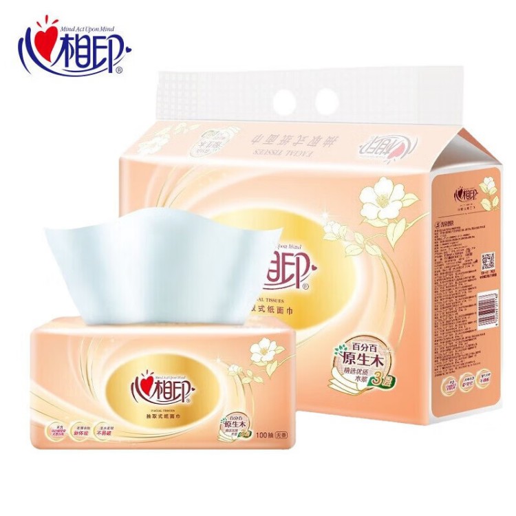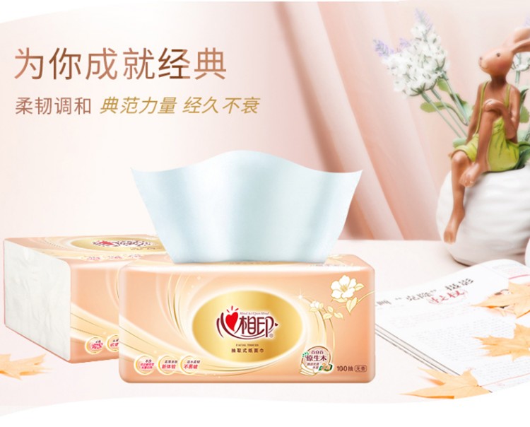【心相印金装金经典100抽三层塑装纸面巾6包】