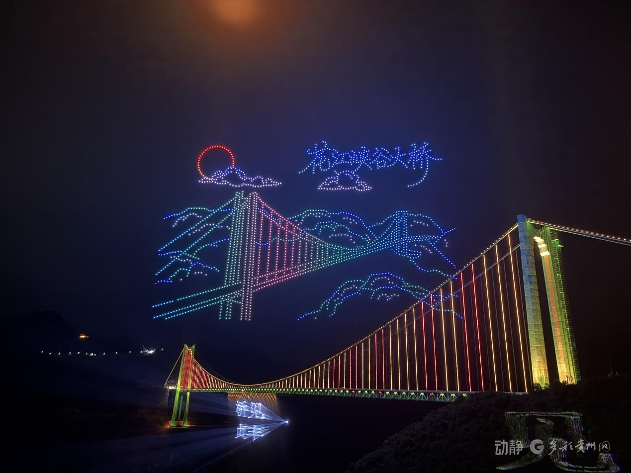 夜晚的花江峡谷大桥更为这座酒店增添了独特的观赏体验。采访当晚,璀璨夺目的水幕灯光秀在大桥上如期上演,流光溢彩映照整个峡谷,呈现了一场震撼的视觉盛宴。