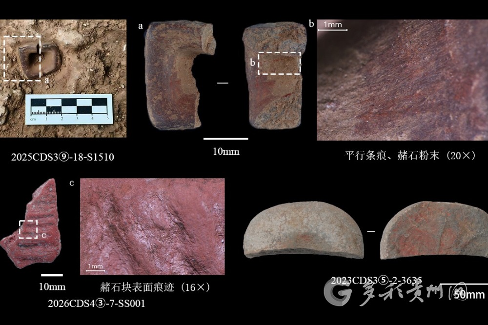 遗址出土了大量带有加工痕迹的赭石
