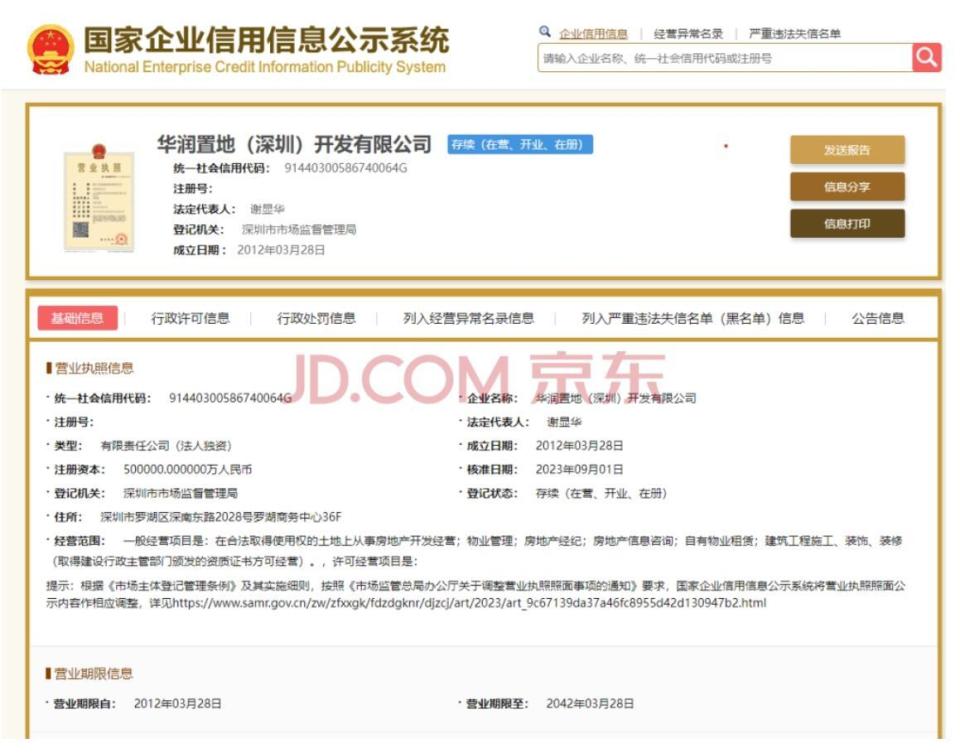7月17日,市场消息显示,华润置地(深圳)开发有限公司100%股权在京东法拍平台进行公开拍卖,起拍价约20.49亿元,评估价达29.28亿元。
