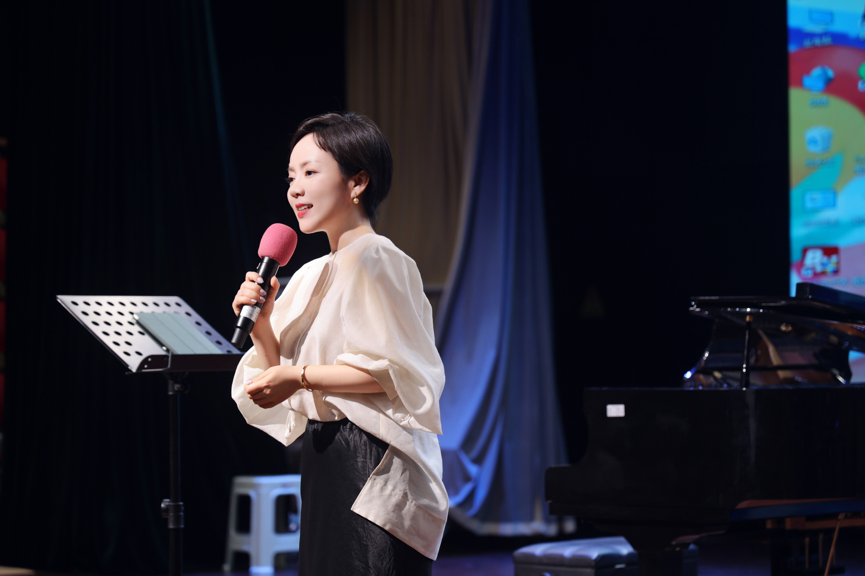 本次讲座邀请到华东师范大学音乐学院教授、博士生导师石春轩子进行主题分享。石老师通过歌唱声音、歌唱语言、歌唱情感、歌唱风格、歌唱修养、歌唱表演六个纬度,分享自己对歌唱的看法和多年声乐学习道路上的经验,探讨新时代民族声乐传承与发展的重要意义。