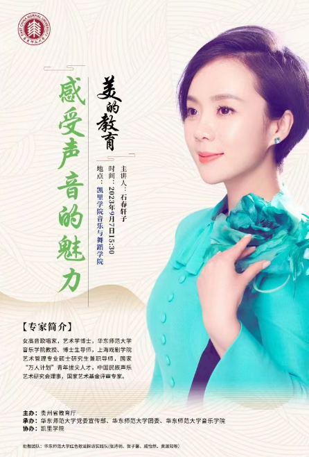 9月3日至9日,由贵州省教育厅主办,华东师范大学党委宣传部、华东师范大学团委、华东师范大学音乐学院党委承办的艺术讲座《美的教育——感受声音魅力》艺术讲座在贵州多地成功举办。