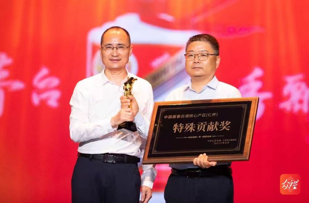 鉴于贵州茅台集团充分发挥龙头优势,推动产业提质升级,促进集群集聚发展,为推动仁怀各项事业再上新台阶作出了极大贡献。仁怀市委、仁怀市人民政府授予贵州茅台酒“中国酱香白酒核心产区(仁怀)特殊贡献奖”荣誉称号。