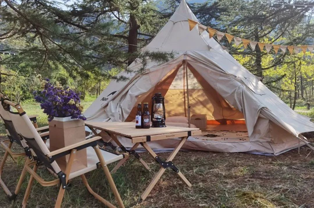 傍晚,在六枝龙井温泉“野趣·轻奢露营基地”的草地里支起营帐,点起篝火。篝火与音乐中,星空与月色下,嗅花草幽香,听林间鸟语。