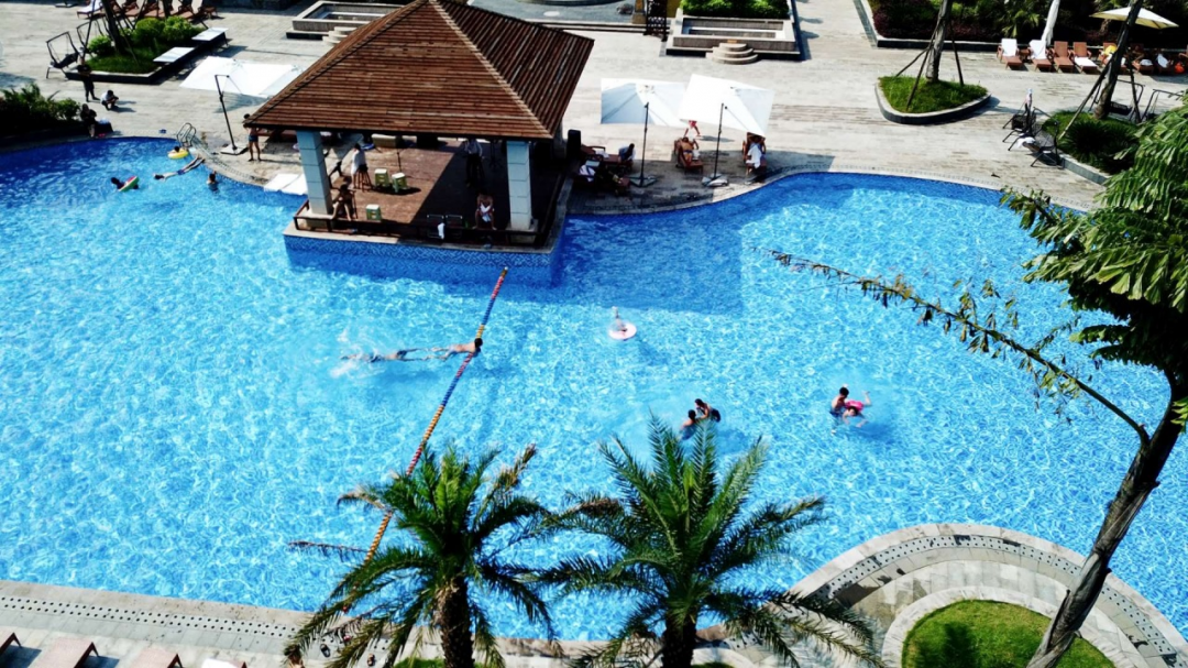 温泉水源于地下2800余米,温度在55℃左右,温暖而舒适。温泉水中还富含对人体有益的矿物质、微量元素,妥妥的美人汤,轻松除去一身疲劳。
