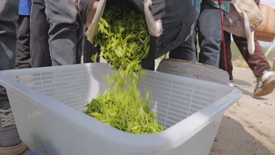 采茶工人陈小敏说:“每一天(茶园)一开摘,我们都来采(茶叶),一天平均扯下来一百七八十块钱是随便有的,基本上这一个月之内都要来采。”