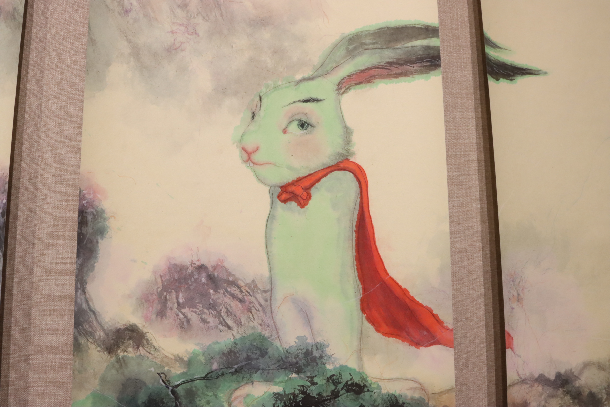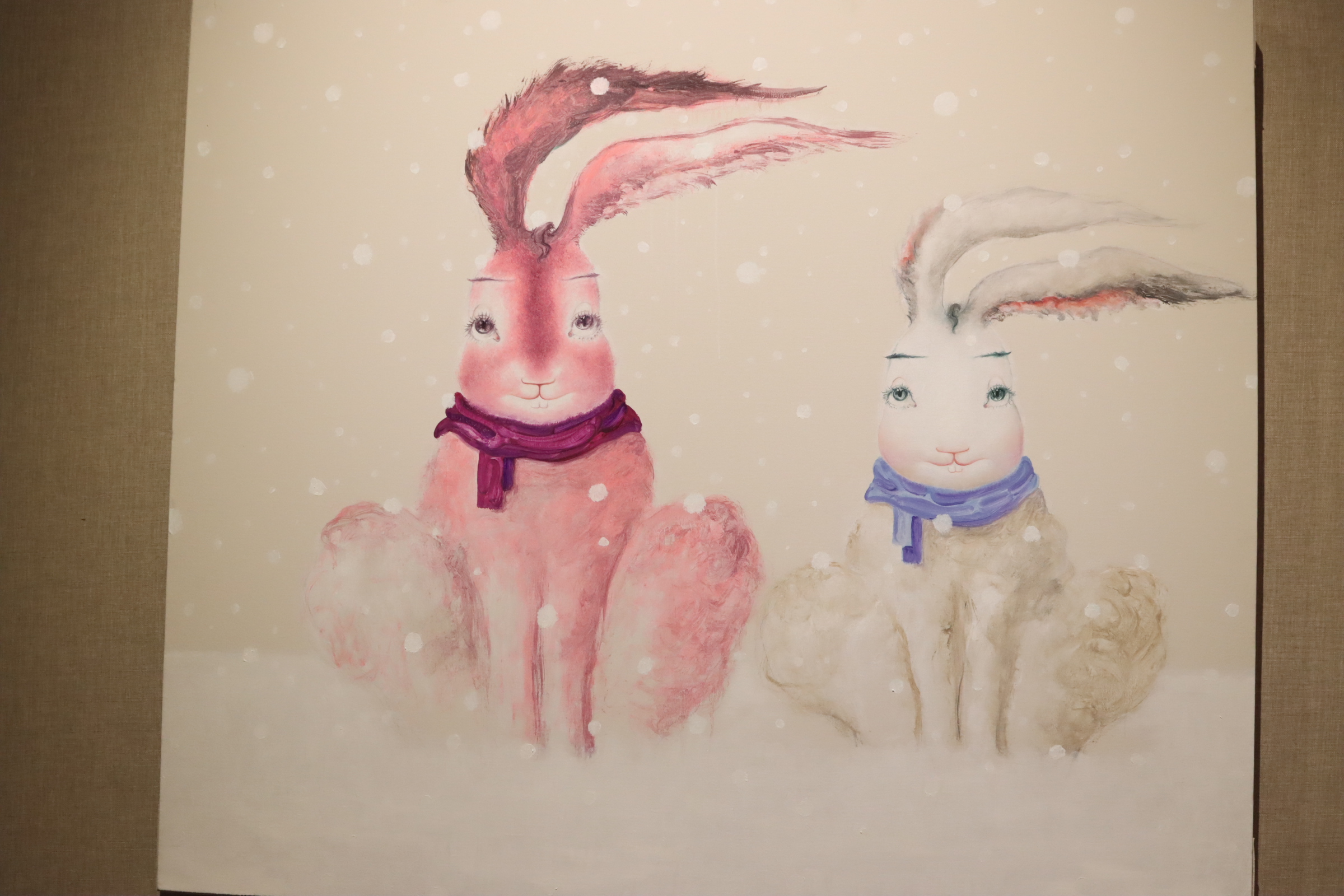 作者用绘画的技巧、丰富的色彩、多变的表现手法,把兔子这种人们十分熟悉的动物重新展现在人们眼前。作品中不同的兔子有的温柔、可爱、呆萌,有的坚韧、镇定甚至有几分小小的滑头,打破了人们对兔子的固有印象,给观众打开了一个广阔的想象空间。
