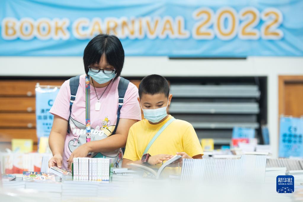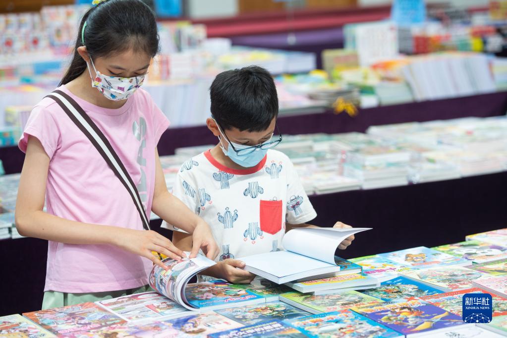 8月28日,小朋友在第二十五届澳门书市嘉年华上选购图书。