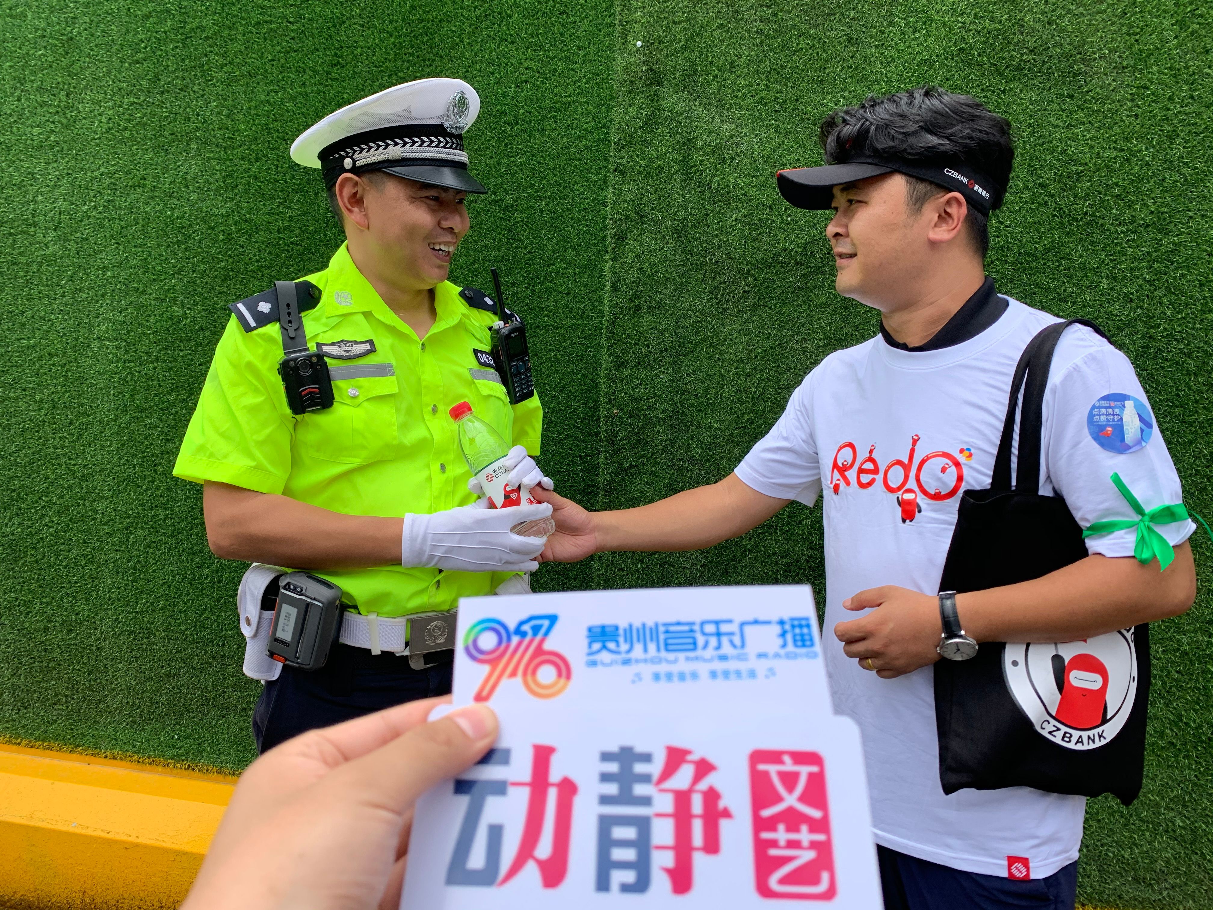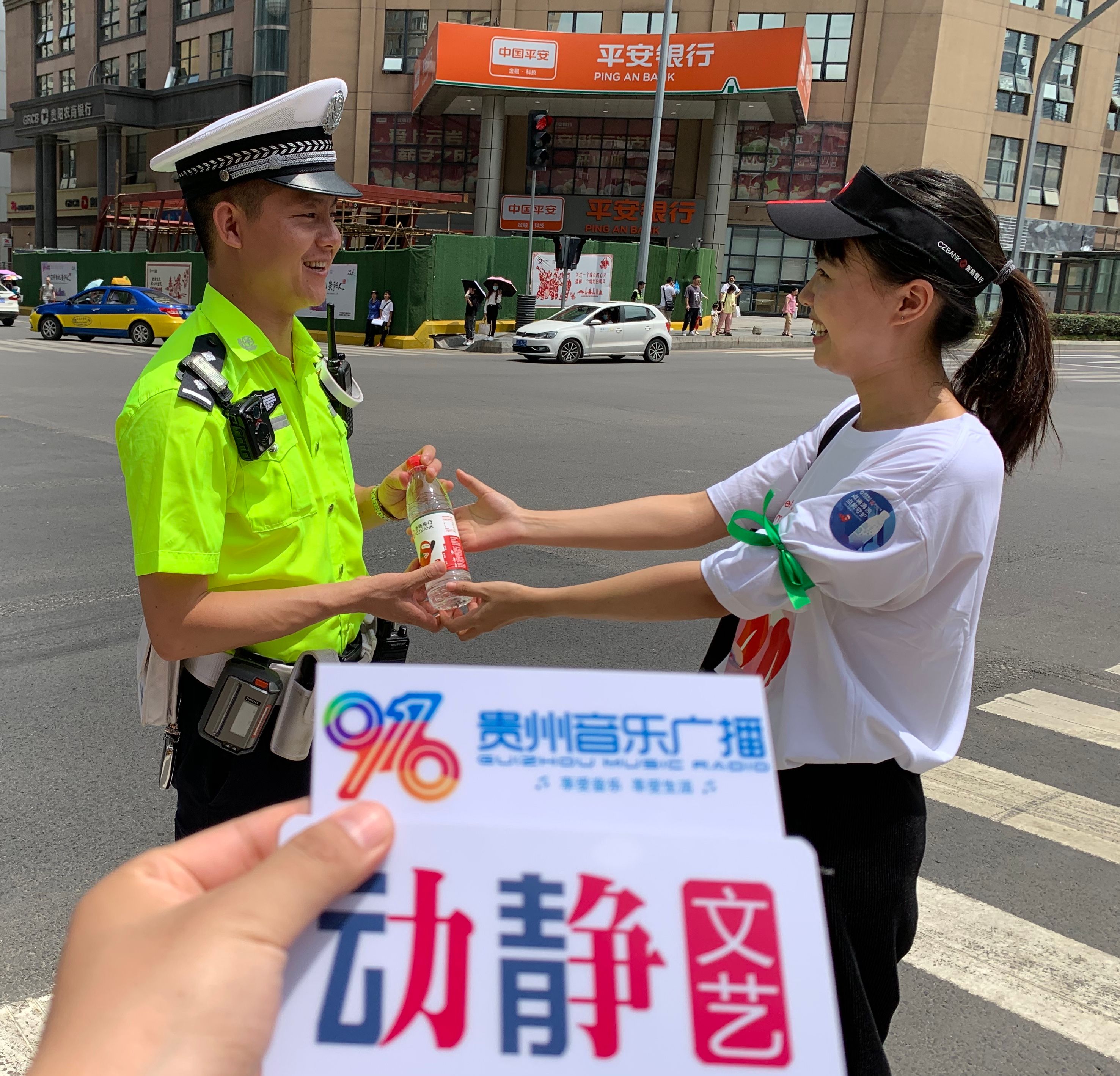 “大热天的,今天这一口水,安逸很!”中午三十几度的天气,正在喷水池路口执勤的一位交警同志,喝着刚刚接到手的矿泉水对记者说。8月11日,浙商银行贵阳分行联合FM91.6贵州广播电视台音乐广播、贵阳市公安交通管理局,共同开展了“点滴清凉·点赞守护”公益赠饮活动,志愿者们给正在烈日下工作的交警们送上一瓶瓶清凉的饮用水,希望通过送清凉举动守护城市里这群可爱的人,并助力贵阳交通文明建设。