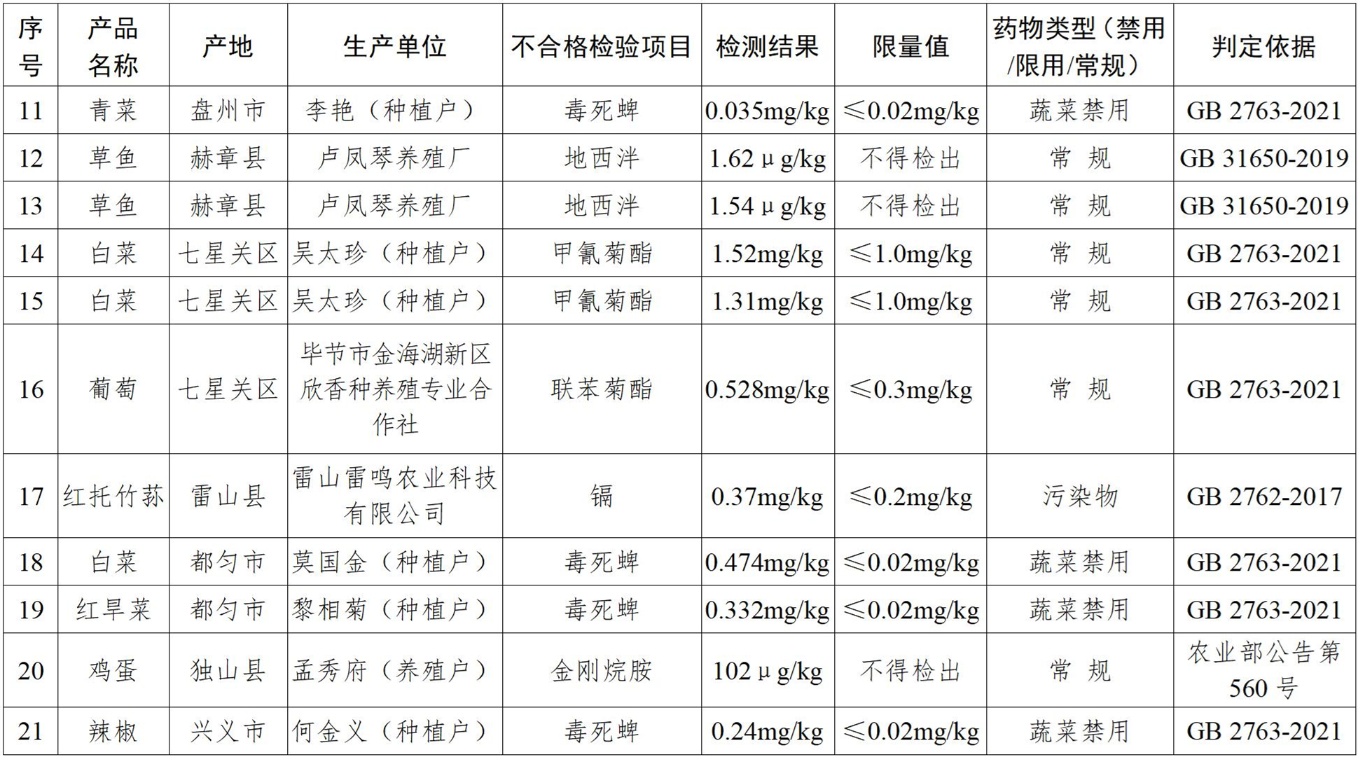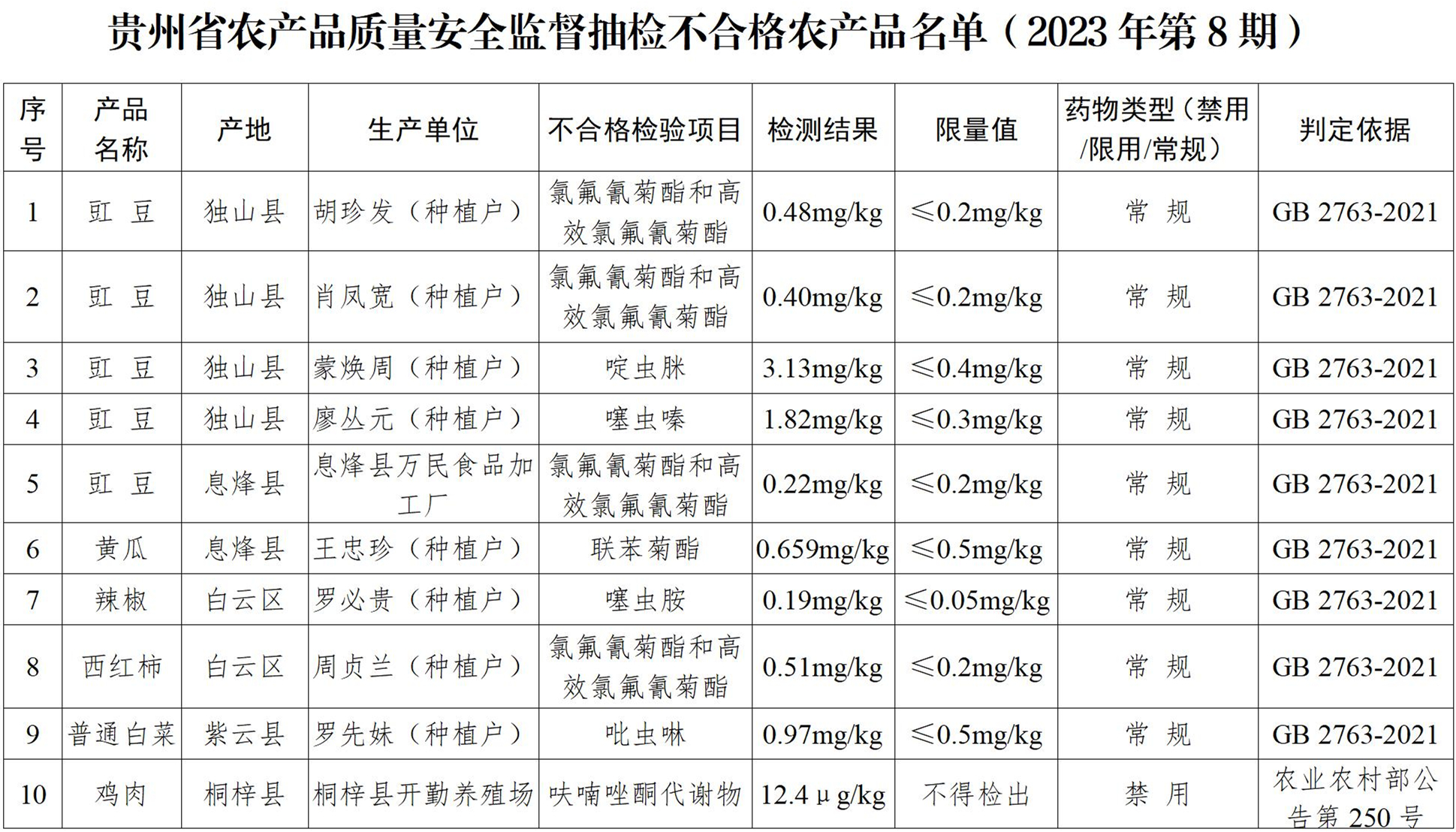 贵州农产品质量安全通告|2023年第8期 21批次农产品不合格