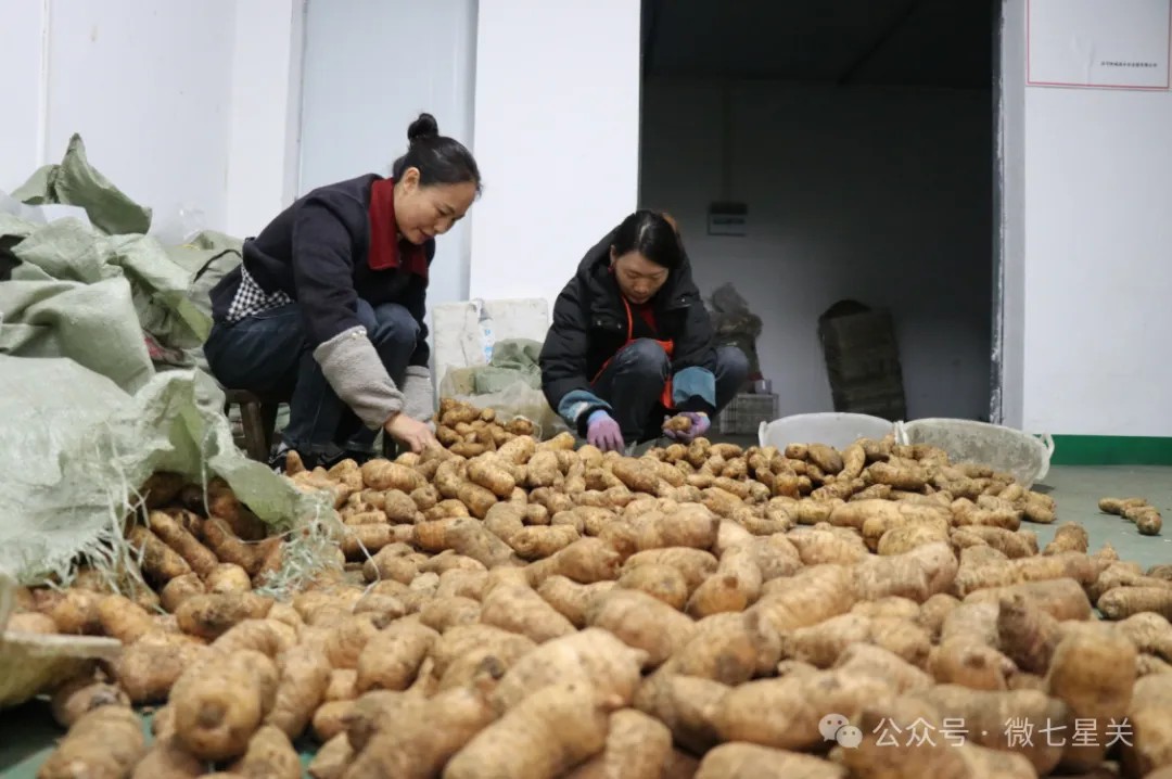 一边分拣前几天刚采收的乌天麻