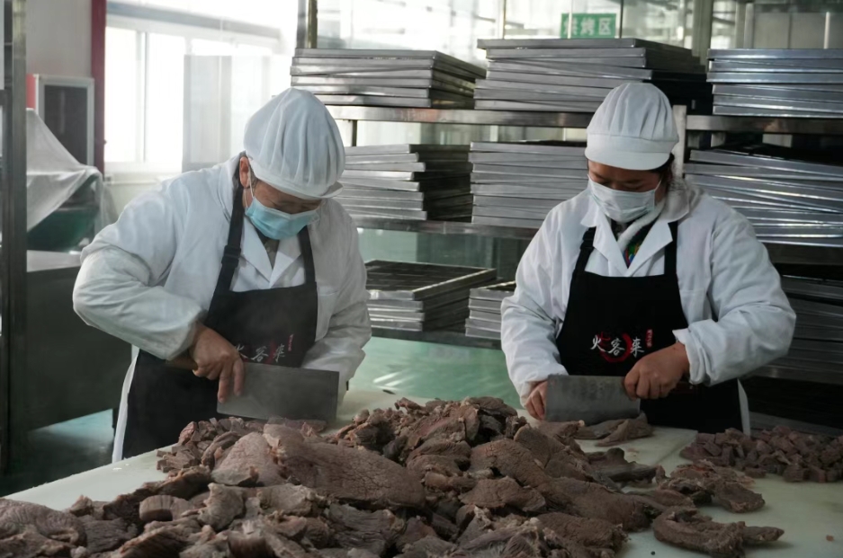 这几天,走进贵州国富生态食品有限公司的生产车间,浓郁醇厚的牛肉香气扑面而来、沁人心脾。生产线上,工人们身着统一工装,精神饱满地穿梭在各个工序之间,从牛肉焯水、切块、油炸,到精准搅拌、真空包装,每一个环节都一丝不苟、精益求精,一派热火朝天的繁忙景象。公司生产车间工人冯素珍一边忙碌一边开心地说:“元旦前后,我们的订单数量越来越多,我们员工也在加班加点赶订单。以前上班时间是早上八点到下午五点多,现在为了赶活,会延长到晚上九十点钟才下班。虽然加班时间在增加,但加班费也跟着涨了不少,以前工资大概3000多块,现在加上加班费能拿到5000多块钱。”