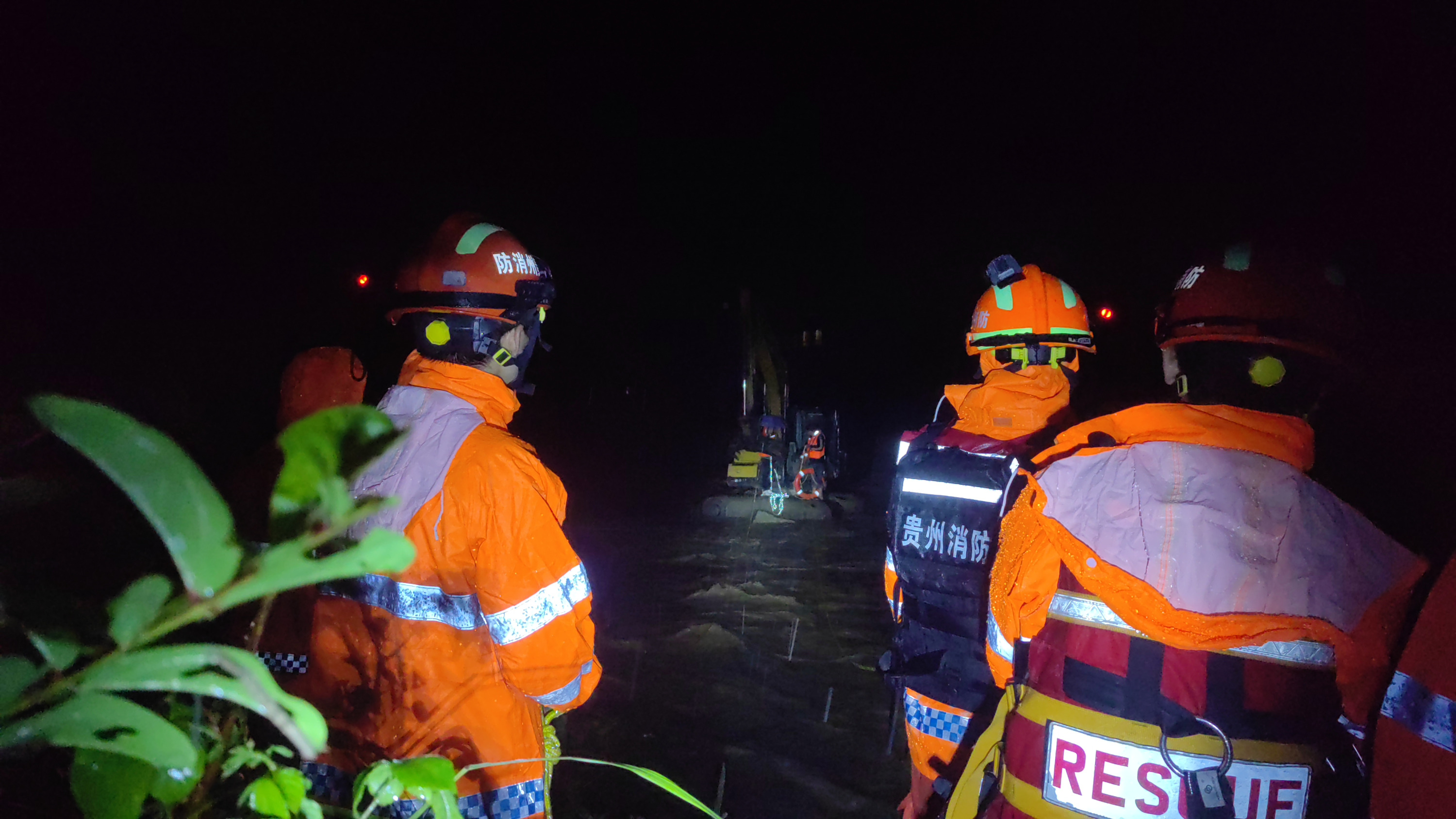 突降暴雨:贵州绥阳:两名群众被困河道挖机,消防成功救援
