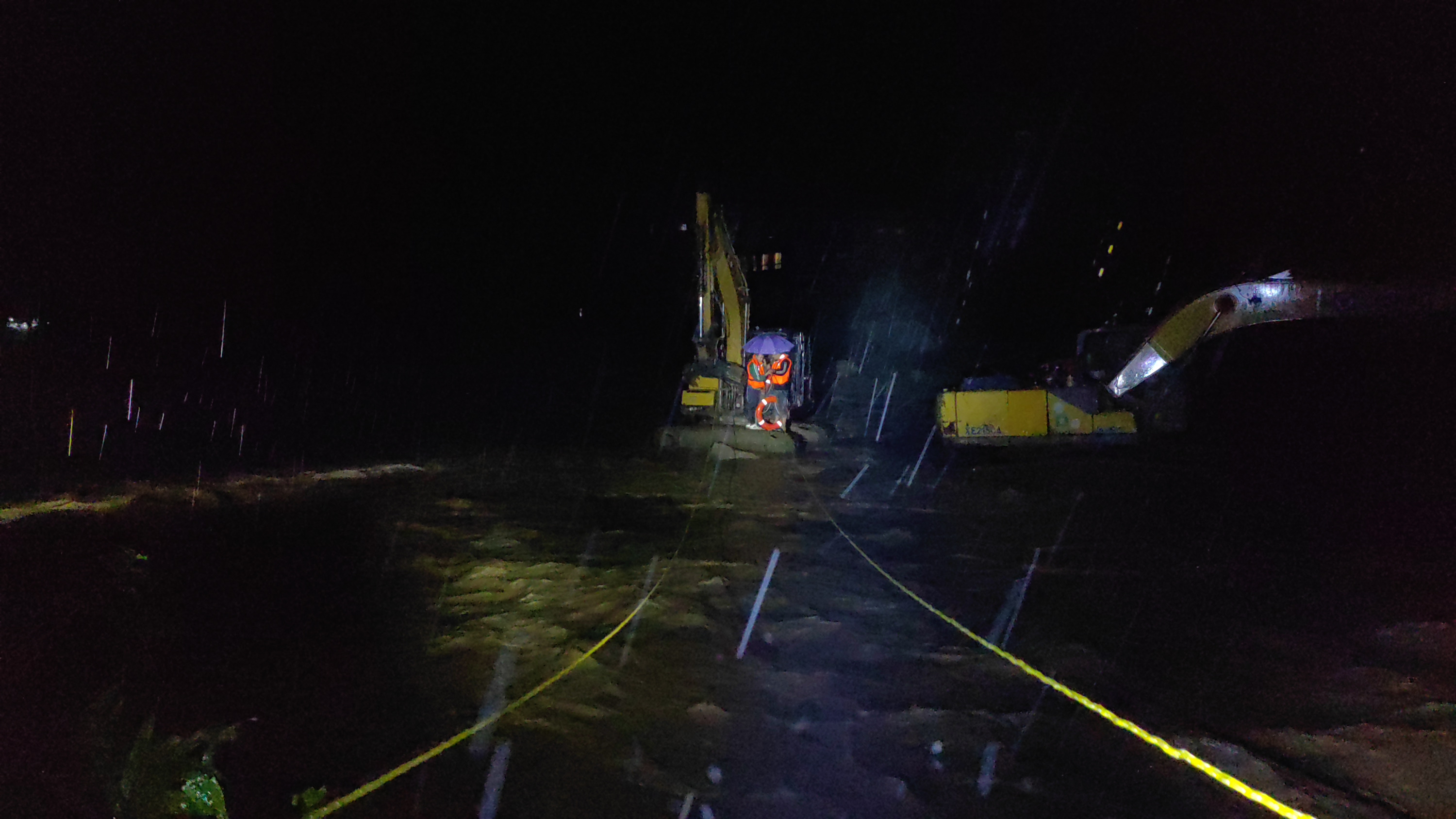 到场后发现,水位在持续上涨,水流湍急,挖掘机停留在河道中央的临时施工土堆上,随时有可能被水流冲塌,情况十分危急。