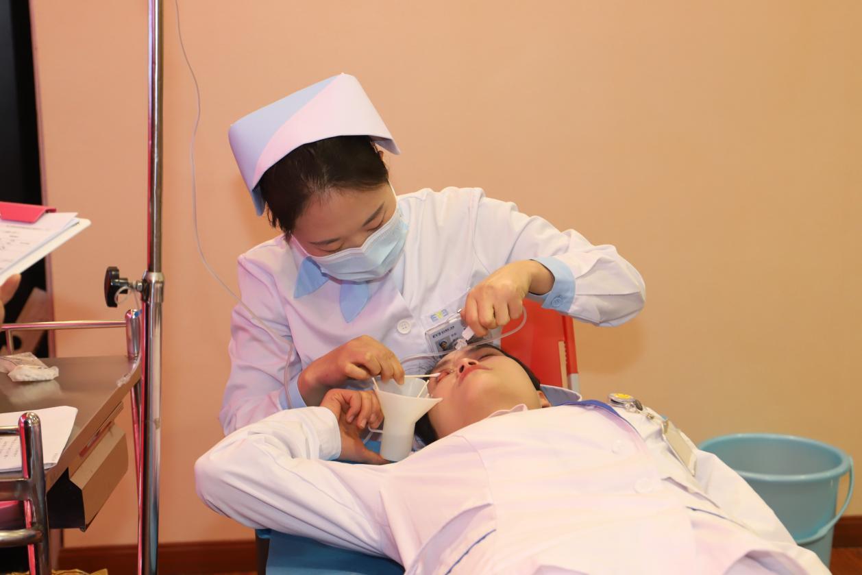 现场气氛紧张而又激烈,选手们个个精神饱满、沉着应战,每一项技能都考验着她们的基本功是否扎实。选手们熟练冷静地展示“真功夫”,较量“真本领”,动作精准,有条不紊地操作,每一个细节都展现出护理团队的良好素养和优质服务。
