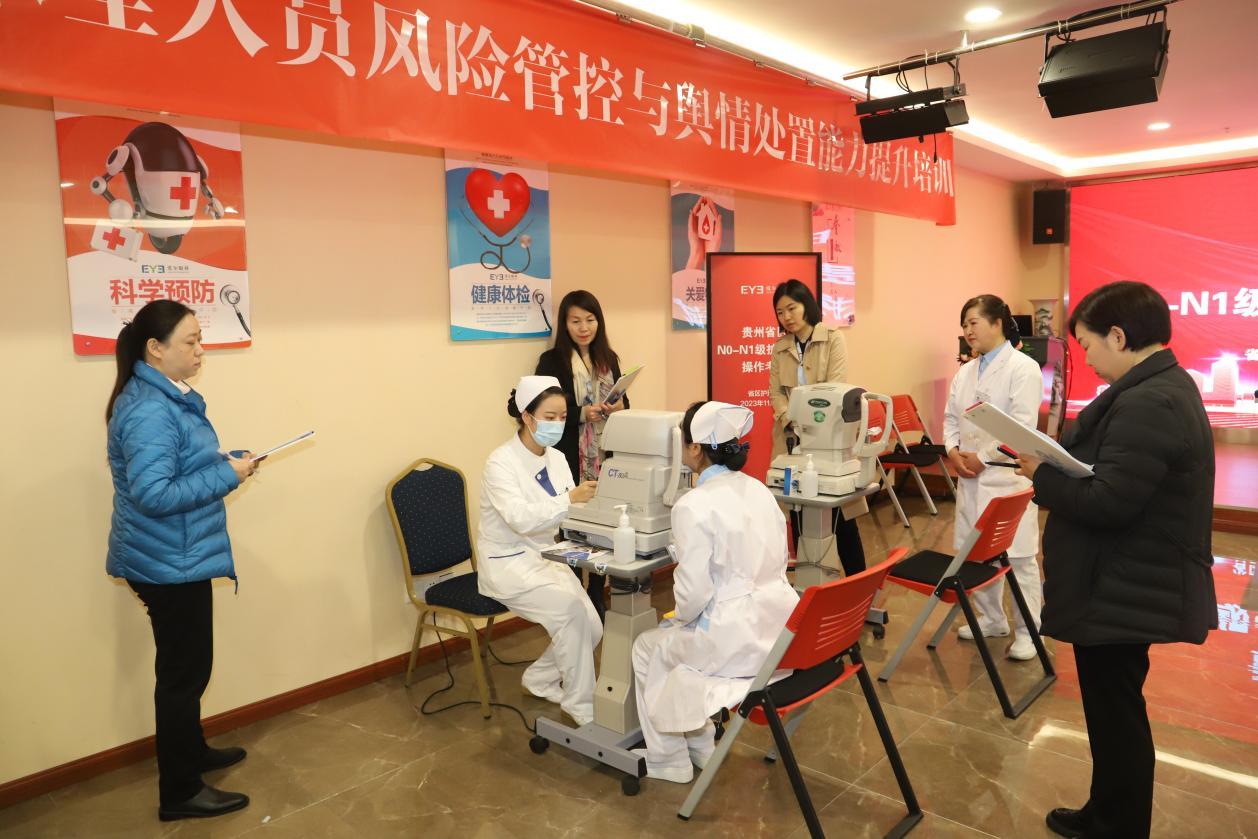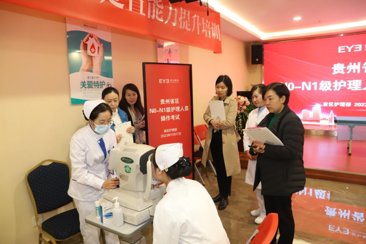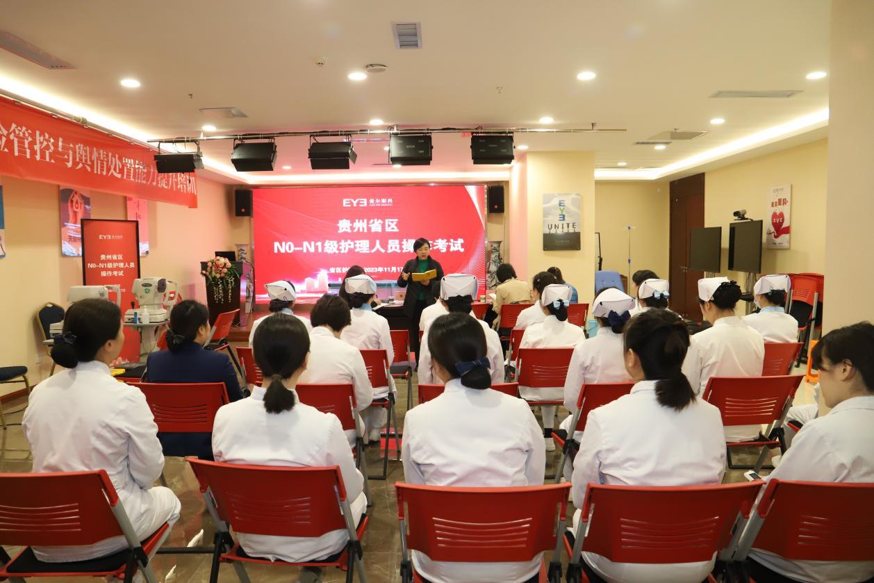 为更好的落实国家关于《进一步改善护理服务行动计划(2023-2025 年)》中要求:开展以“强基础、提质量、促发展”为主题的进一步改善护理服务行动计划,持续提高集团护理人员专业知识和专科技能,加强基础训练,提升护理服务质量与内涵,实施专业化、规范化、同质化培训赋能,依据《2023 年集团护理人员技能分级培训暨 NO-N1 级护理人员培训考核实施方案》,爱尔眼科贵州省区11月17日组织开展贵州省区NO-N1级护理人员理论及操作考核,由集团郑敏老师、云南省区护理总监杨红、云南艾维护理总监高启红担任评审专家。
