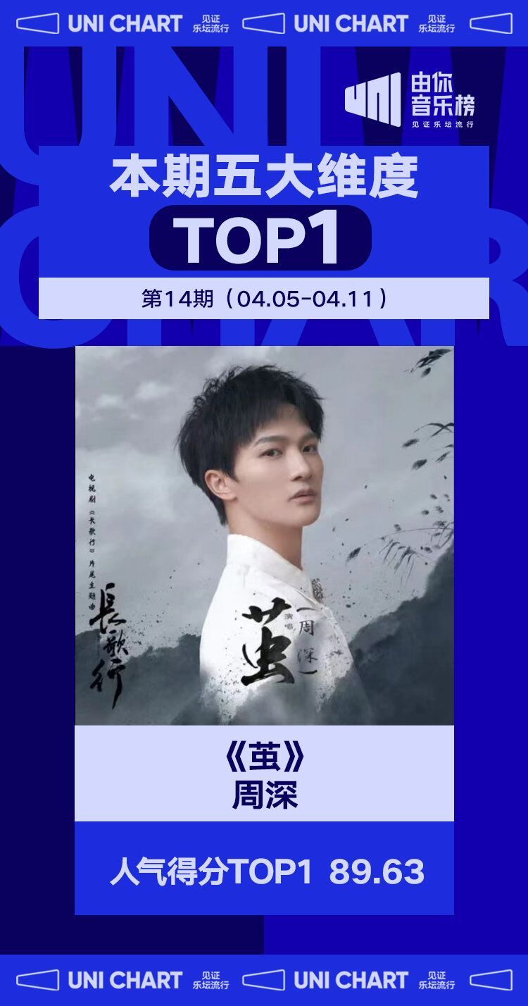 由周深为影视剧《长歌行》演唱的片尾主题曲《茧》,连续四周上榜,成为本期电视剧原声类成绩最佳单曲,同时也是本期人气得分最高的单曲。