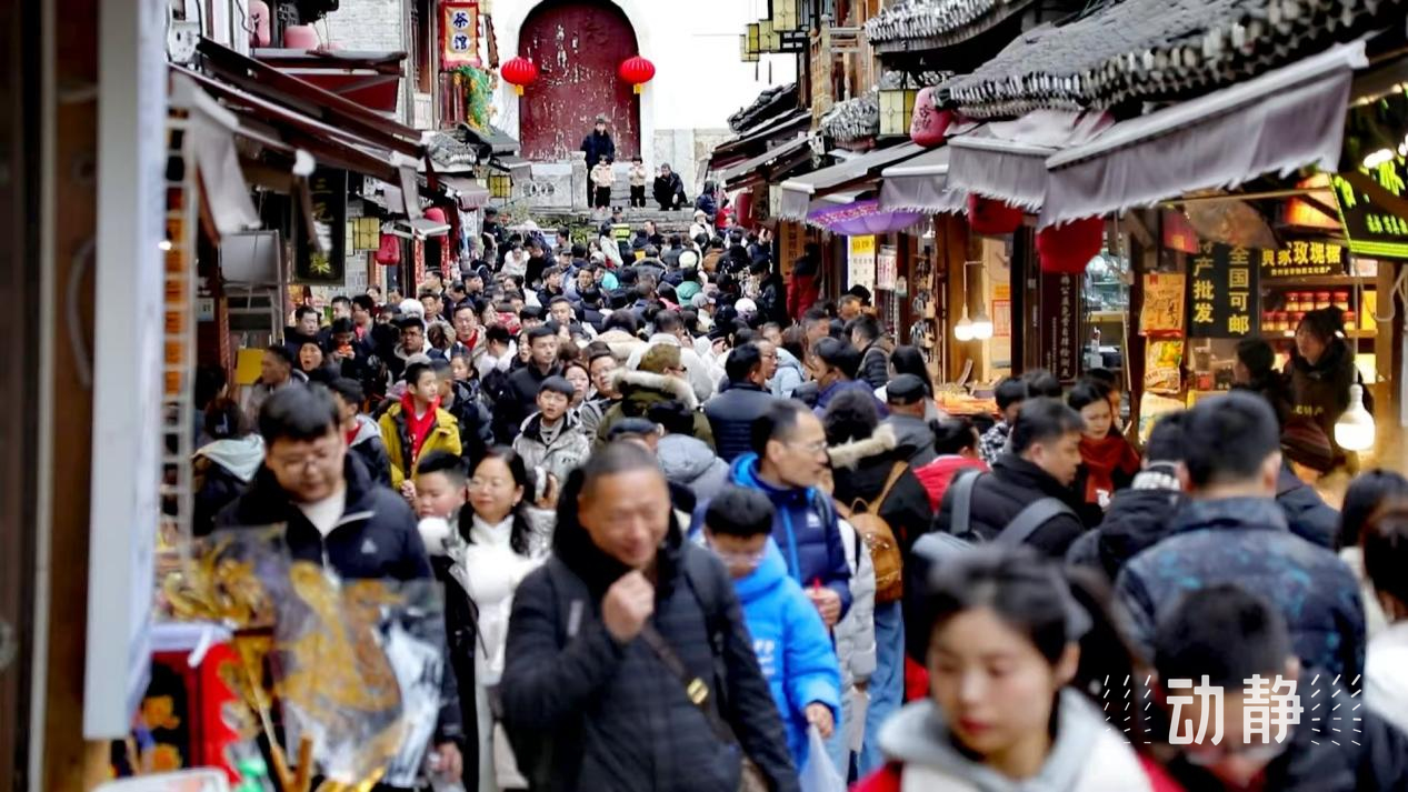 连日来,贵州各地举办了丰富多彩的春节活动,为市民游客送上满满的新春祝福。在贵阳市青岩古镇,舞龙、古风巡游、大明迎新礼、快闪等系列演艺节目轮番上演,随机穿插的新年送福等互动环节让年味更加浓厚。