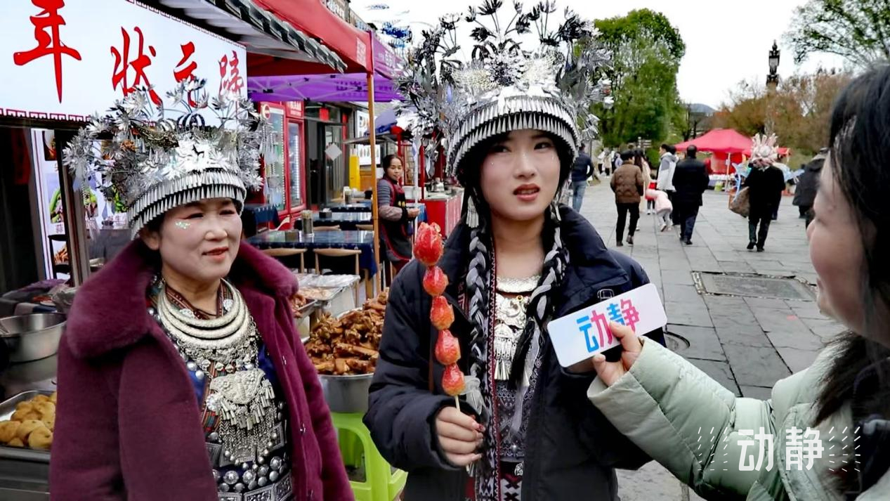 从传统民俗到非遗展示,多彩的文化活动不仅增添节日氛围,也让市民游客“沉浸式”体验传统文化魅力,记者看到很多朋友都换上了贵州少数民族服装或传统汉服进入古镇。